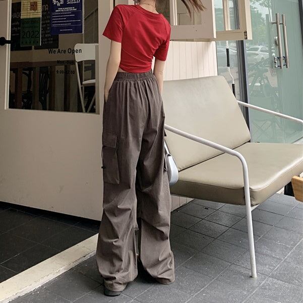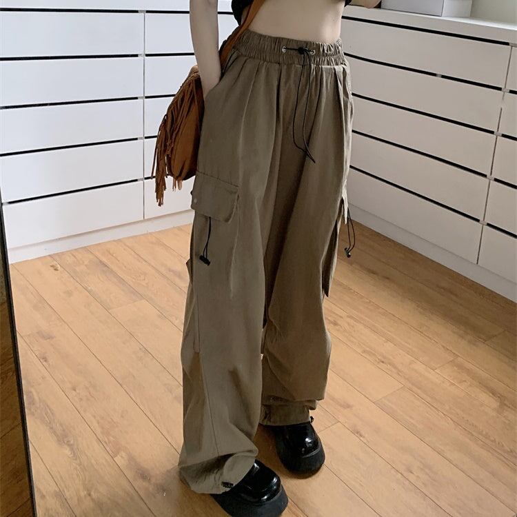 カーゴパンツ レディース 韓国 ファッション ワイドパンツ サイドポケット ワイドパンツ ミリタリーパンツ カジュアル