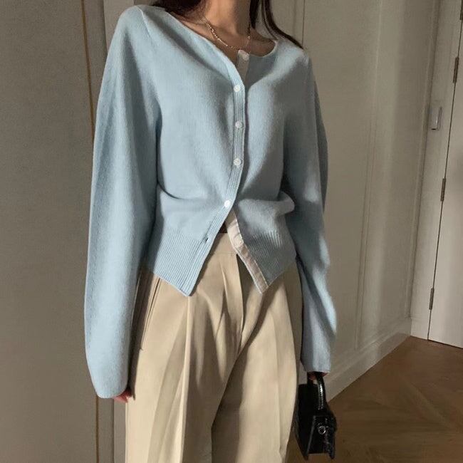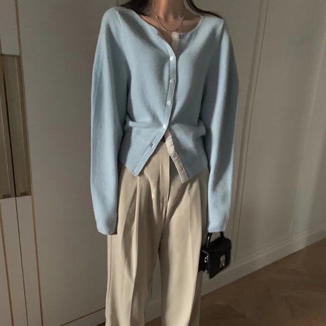 カーディガン レディース 韓国 ファッション ニット バイカラー クルーネック 長袖セーター 秋冬トップス おしゃれ