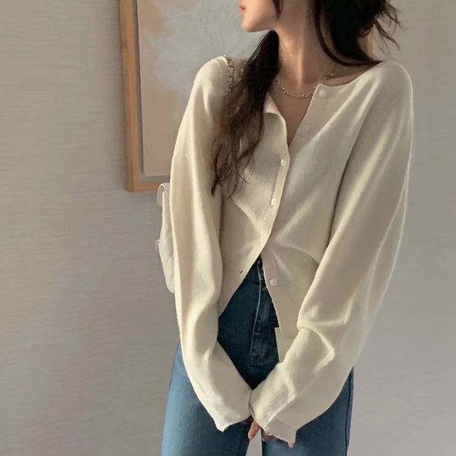 カーディガン レディース 韓国 オープンカラー きれいめ カーデ トップス 春 ファッション