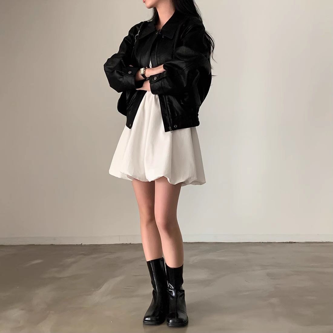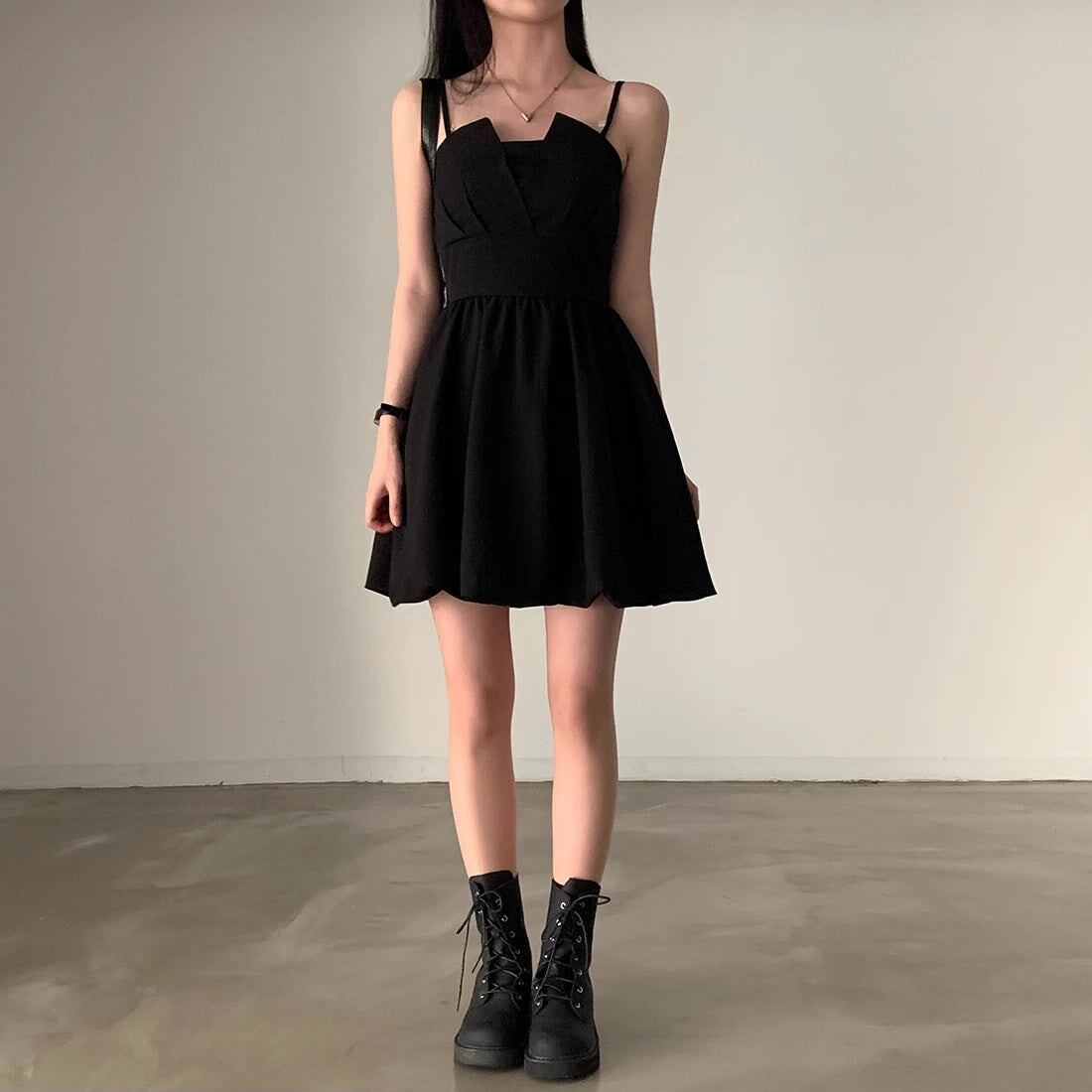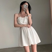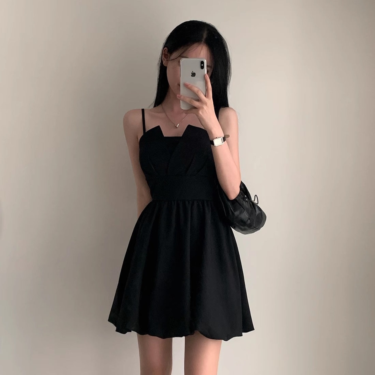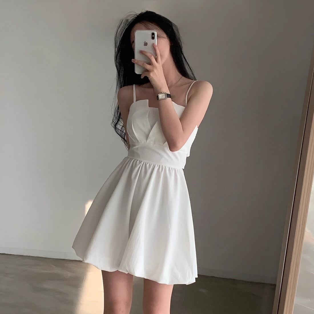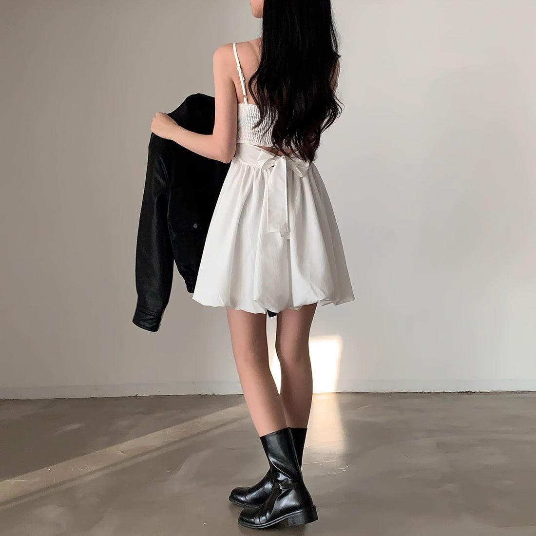 キャミ ミニドレス ボースリーブ フレア ミニワンピース 韓国 ファッション お呼ばれ バックシャン ウエストリボン ワンピース