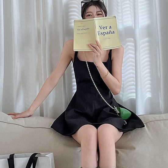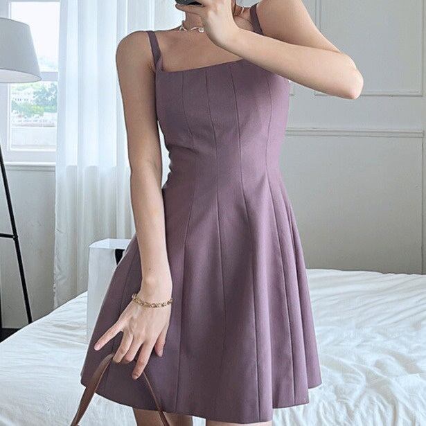 キャミワンピース レディース 韓国 ファッション フレア ミニワンピース ノ—スリーブ ワンピ 黒 パープル