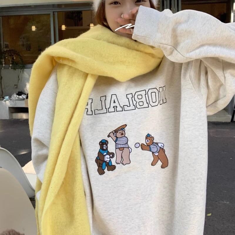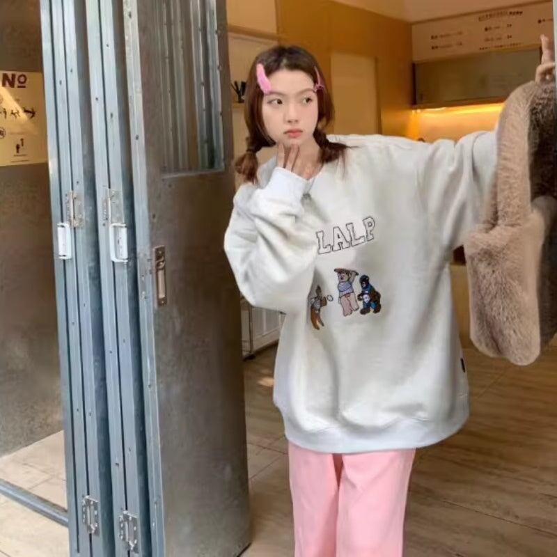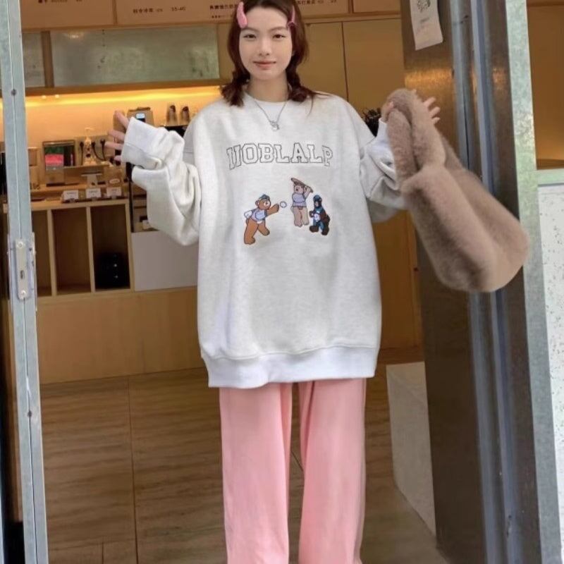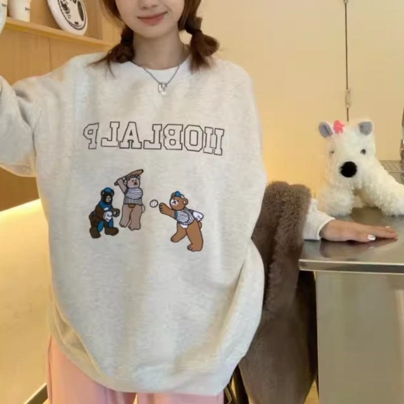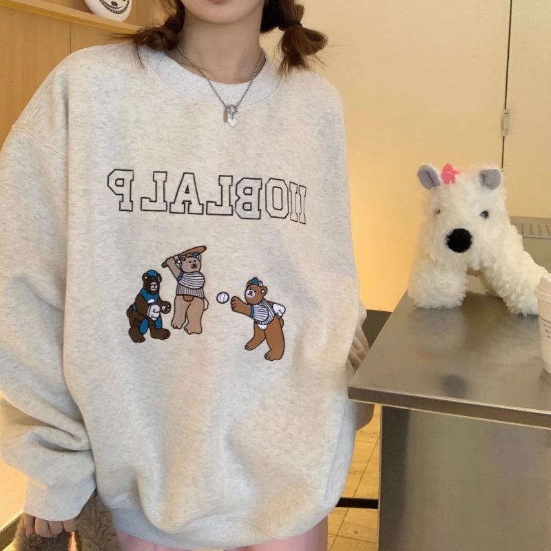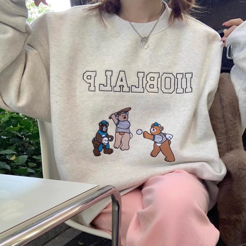 キャラ スウェット レディース 韓国 ファッション 秋冬 トップス くま オーバーサイズ トレーナー