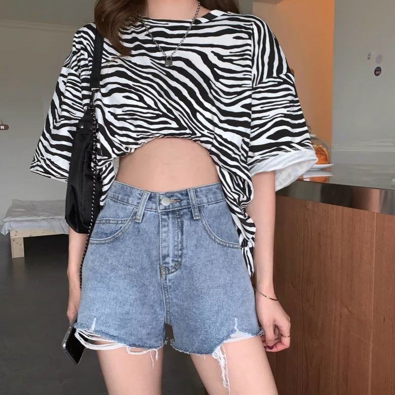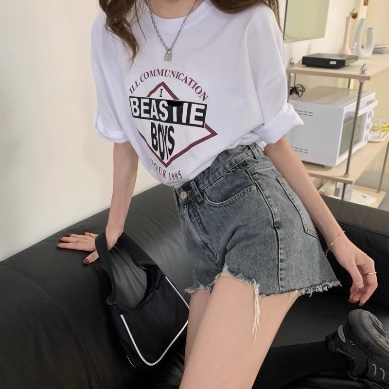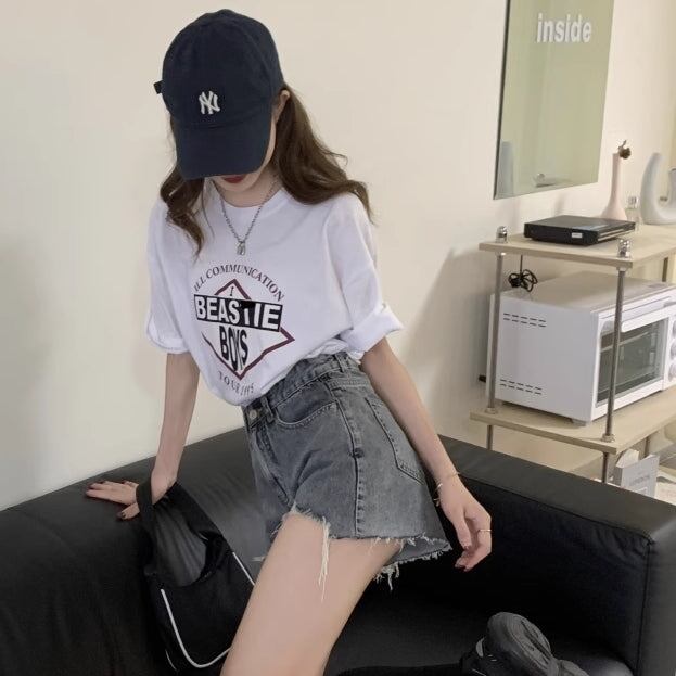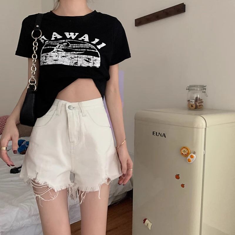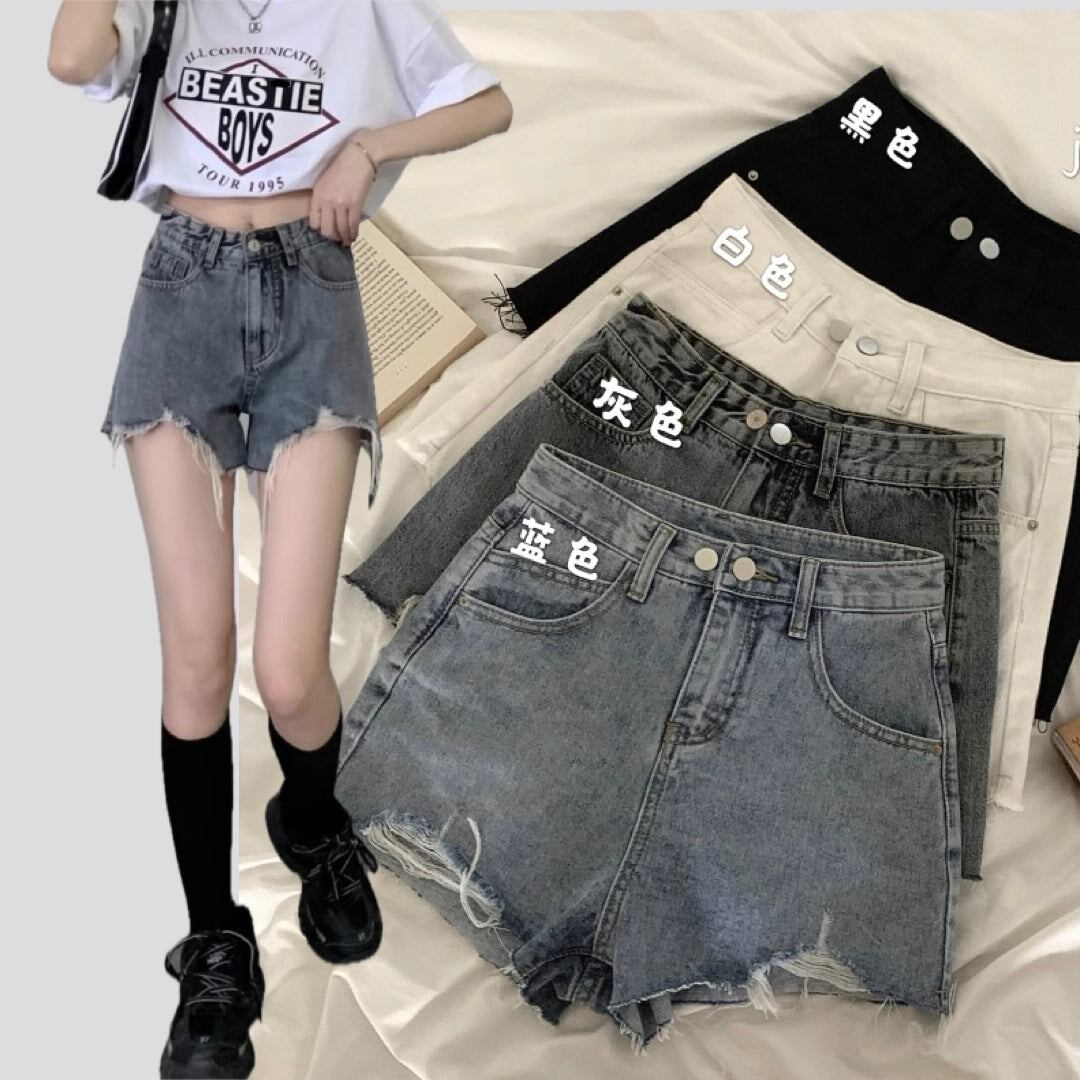 クラッシュ デニム ショートパンツ レディース ヴィンテージ加工 韓国 ファッション 春夏 ブラック ブルー カラーデニム