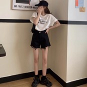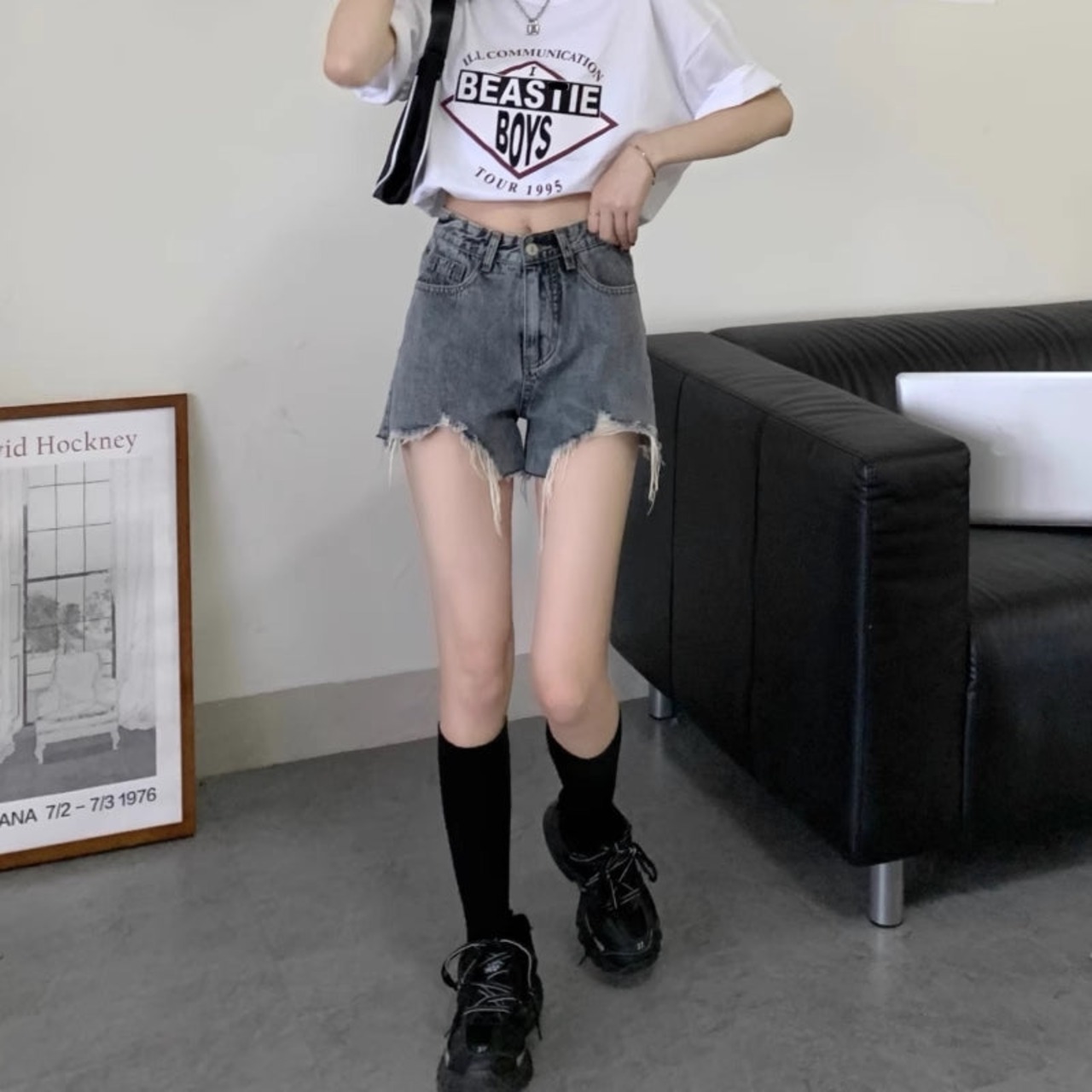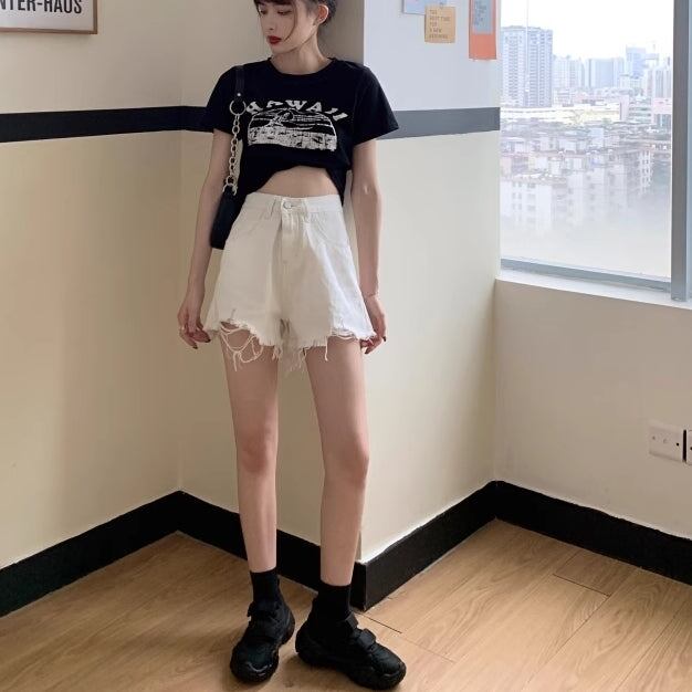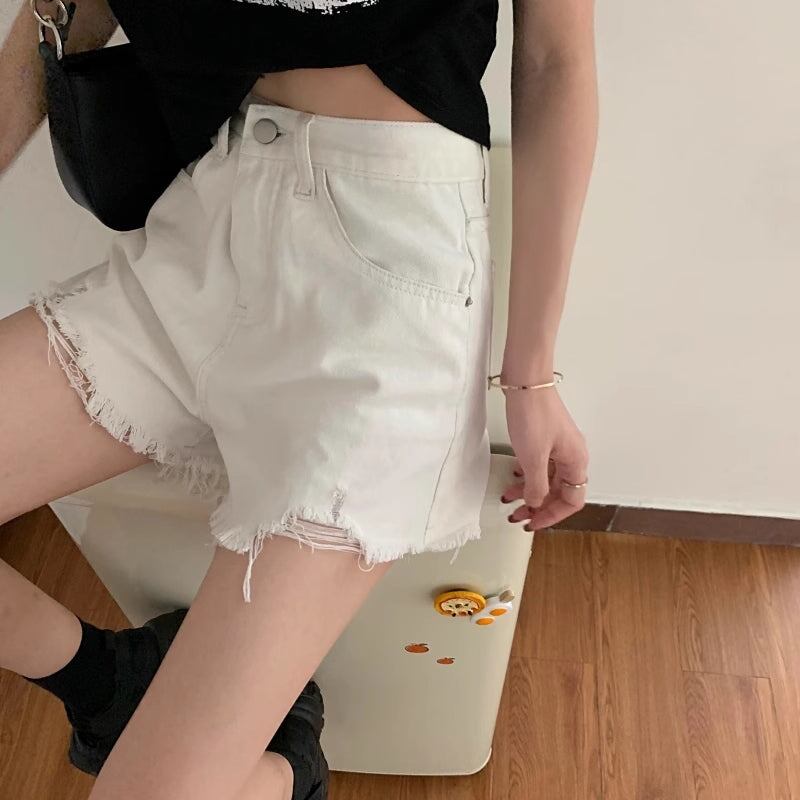 ショートパンツ デニム レディース 韓国 ファッション クラッシュデニム カラーデニム 黒デニム ダメージデニム ミニマム アングラ