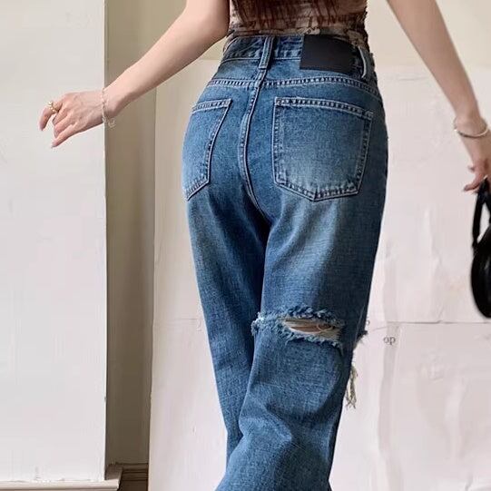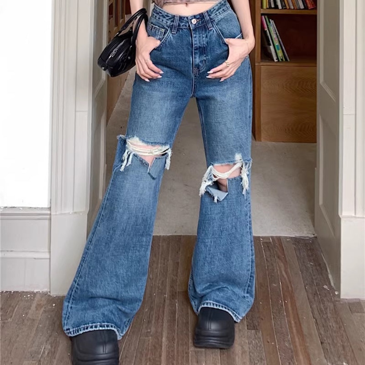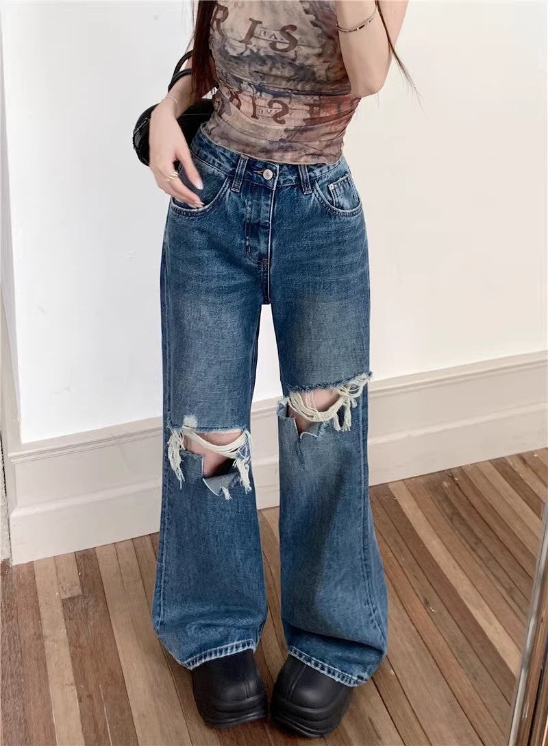 デニムパンツ ダメージ加工 レディース 韓国 ファッション ストリート クラッシュ リップドジーンズ
