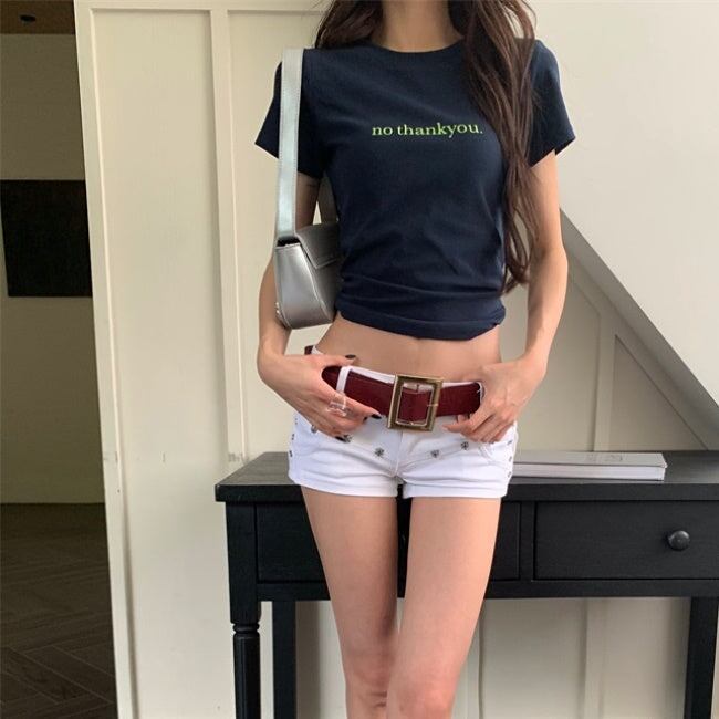 クロップド Tシャツ レディース 韓国 ファッション ロゴ メッセージ ショート丈 T 夏 トップス