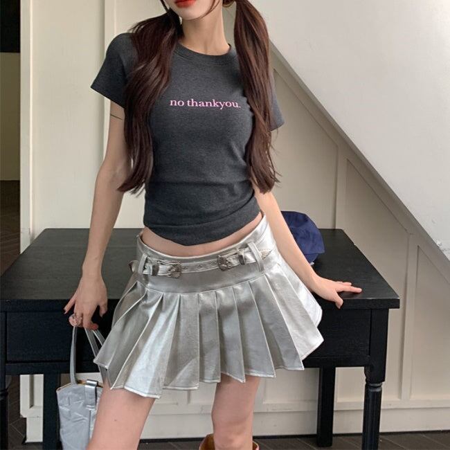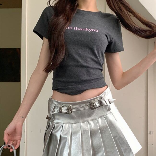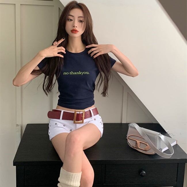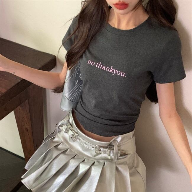 タイトTシャツ 半袖 レディース 韓国 ファッション ロゴプリント シンプル ベーシック レターT メッセージ ネイビー グレー 夏T