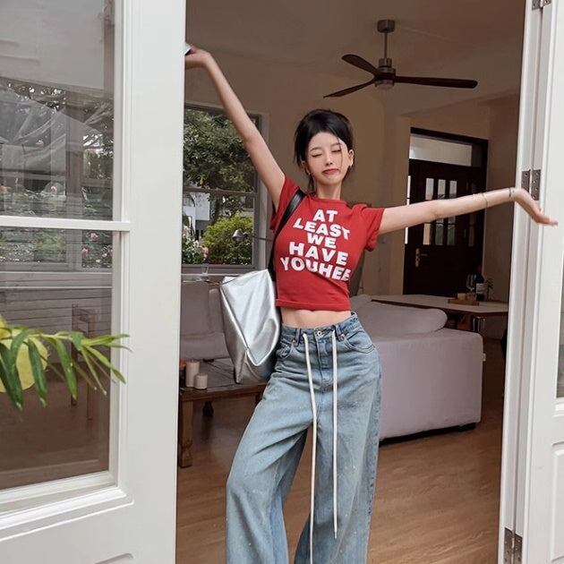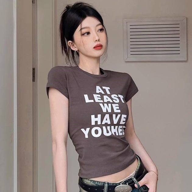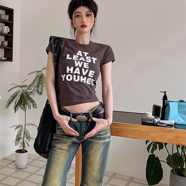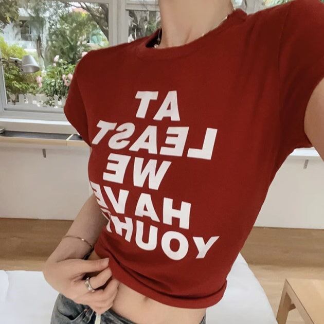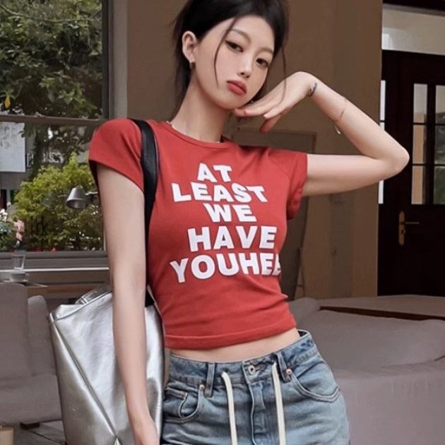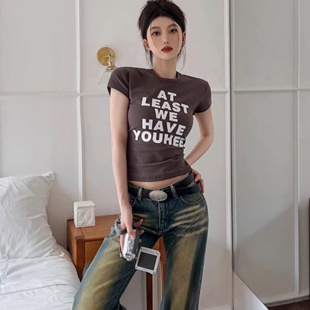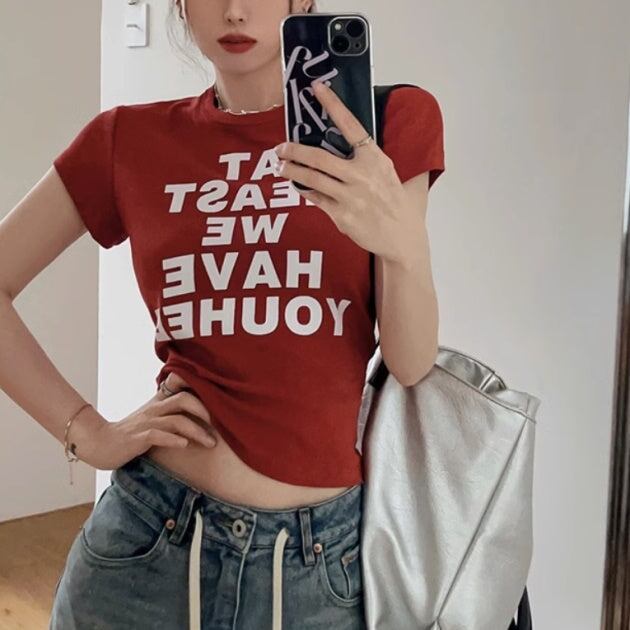 クロップド Tシャツ ロゴ グラフィック タイト T レディース 韓国 ファッション 半袖 夏トップス ロゴプリント レタープリント ショートスリーブ