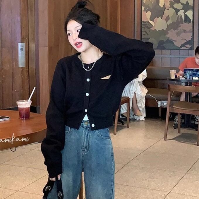 クロップド カーディガン レディース 韓国 ファッション ゆったり ワイド ショート丈 ボタン ニット