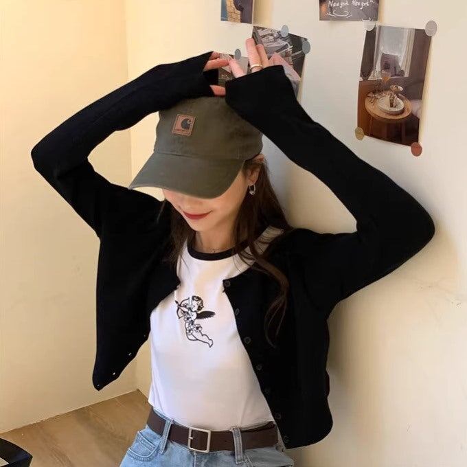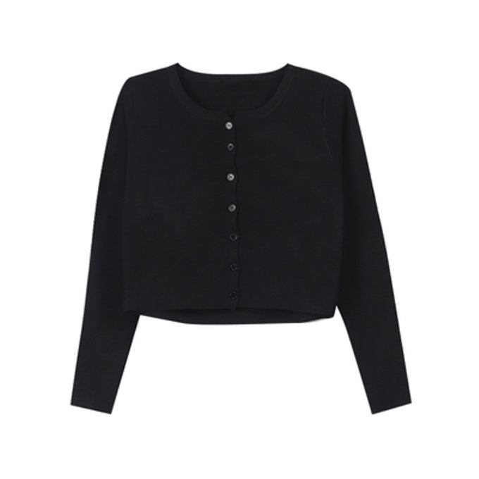クロップド カーディガン レディース 韓国 ファッション ショート丈 シンプル 黒カーデ 長袖 羽織 夏秋