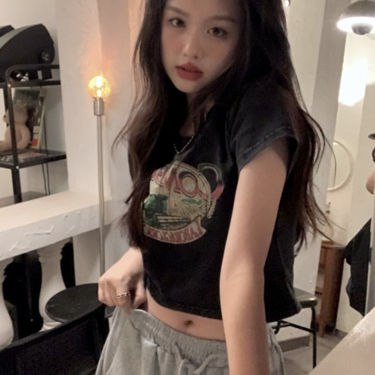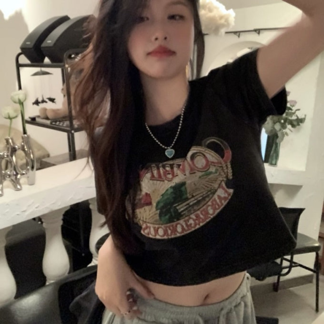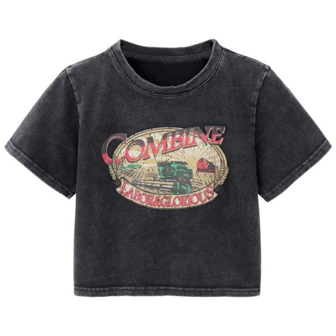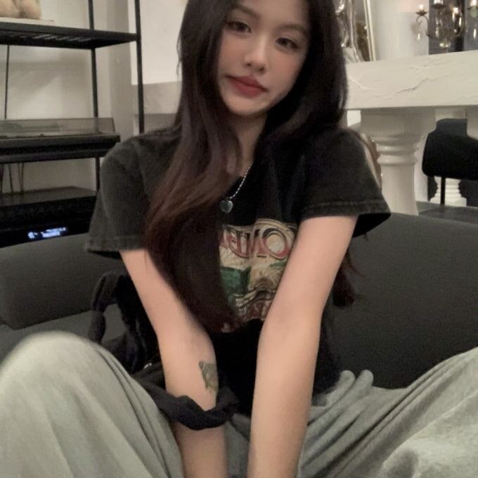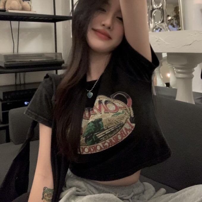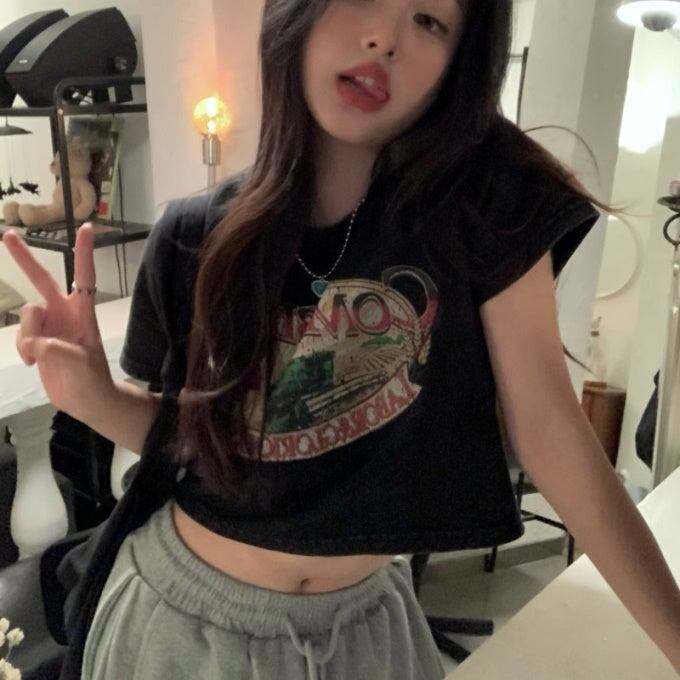 クロップド グラフィック Tシャツ レディース 韓国 ファッション 夏 ショート丈 T トップス