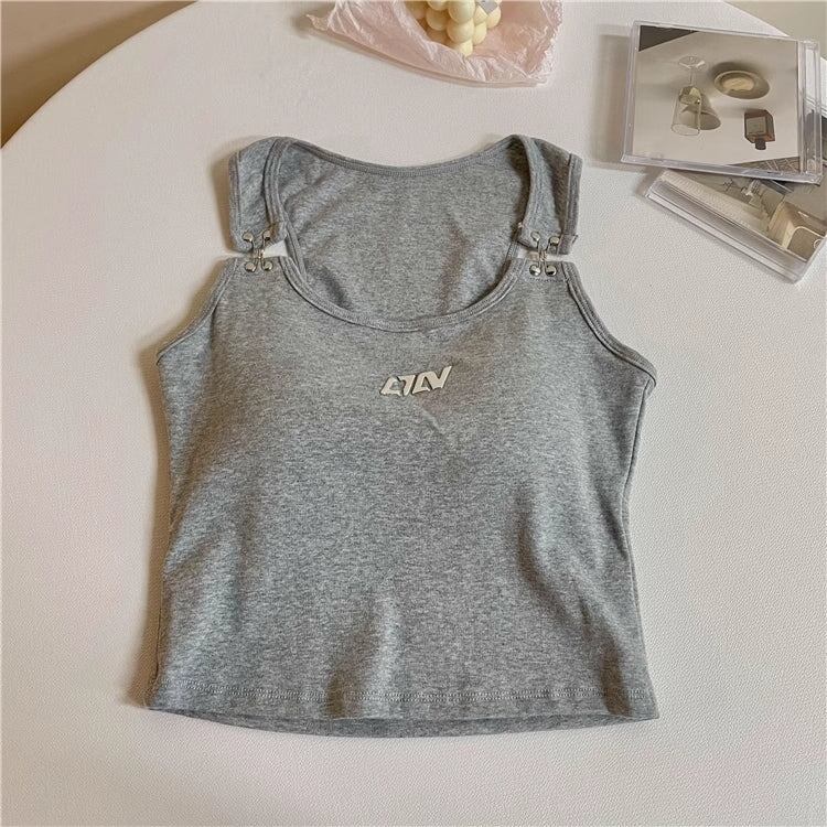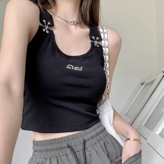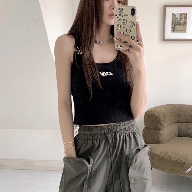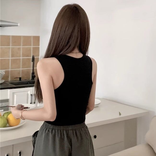 クロップドタンクトップ レディース 韓国 ファッション ブラトップ へそ出し ショート丈 ホック式 カップ内臓 レーサーバック