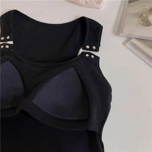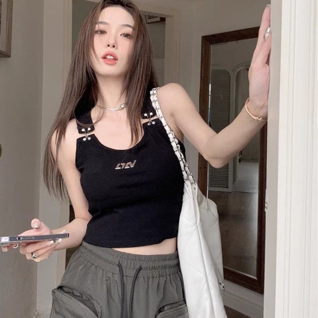 クロップド タンクトップ レディース 韓国 ファッション ブラトップ へそ出し ショート丈 ホック式 カップ内臓 レーサーバック