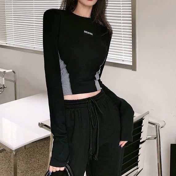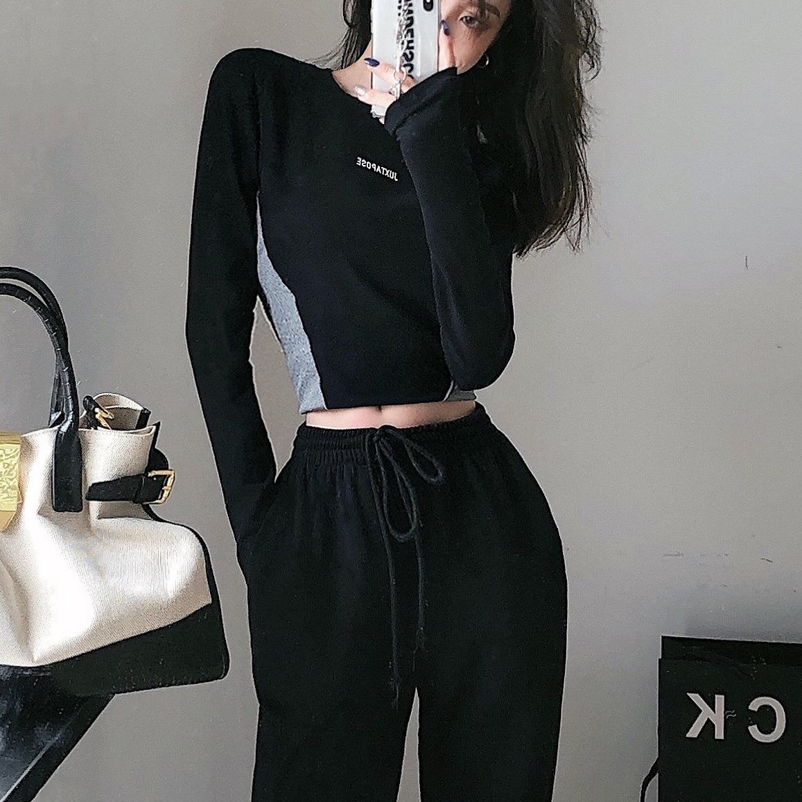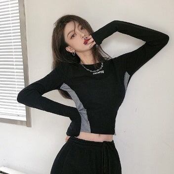 クロップトップ スポーツ レディース 韓国 ファッション ショートトップス Tシャツ ストレッチ カットソー ロゴ ボディフィット ストレッチ ロング袖 長袖 インナー 春トップス