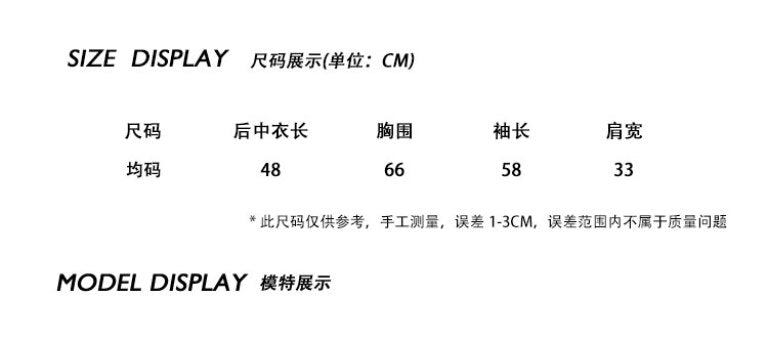 着丈 48 cm肩幅 33 cmバスト 66 cm袖丈 58 cm