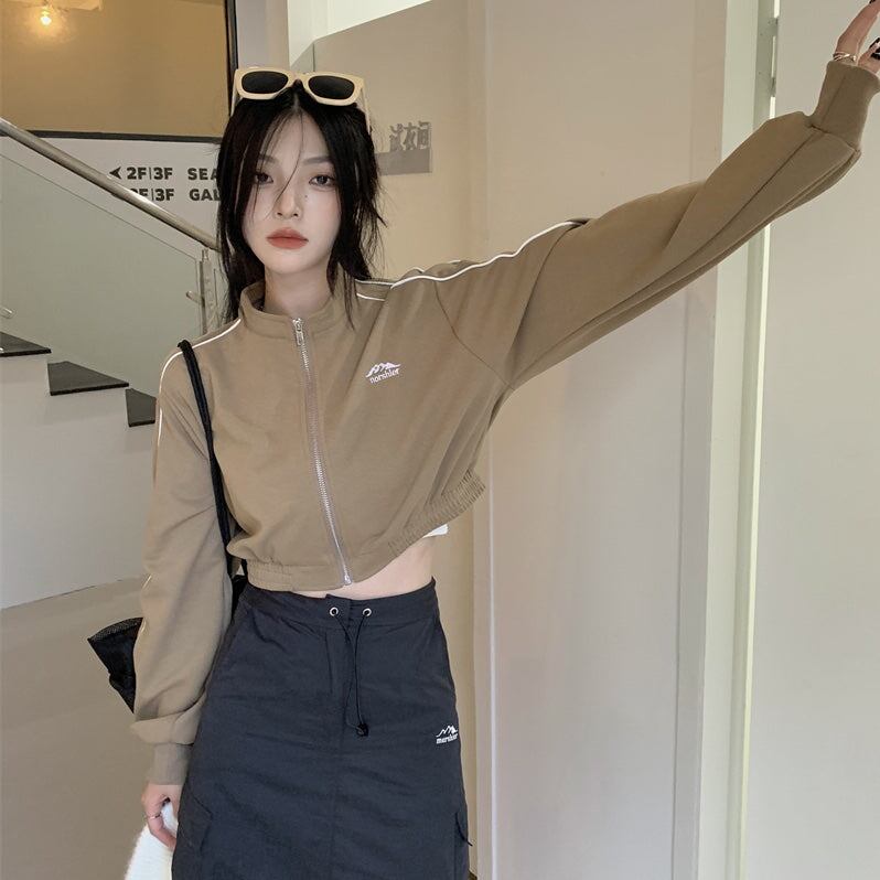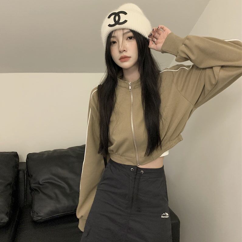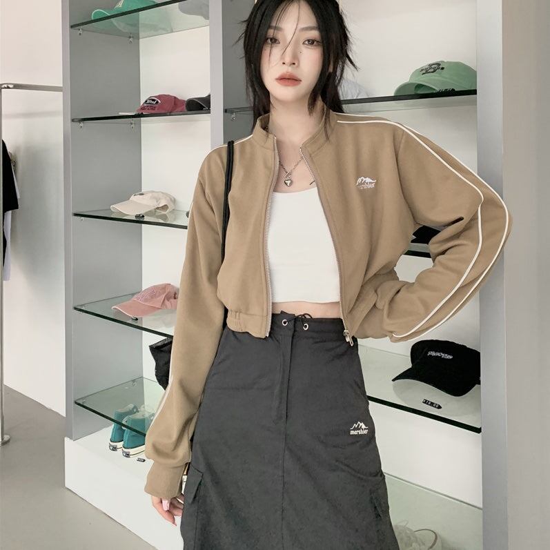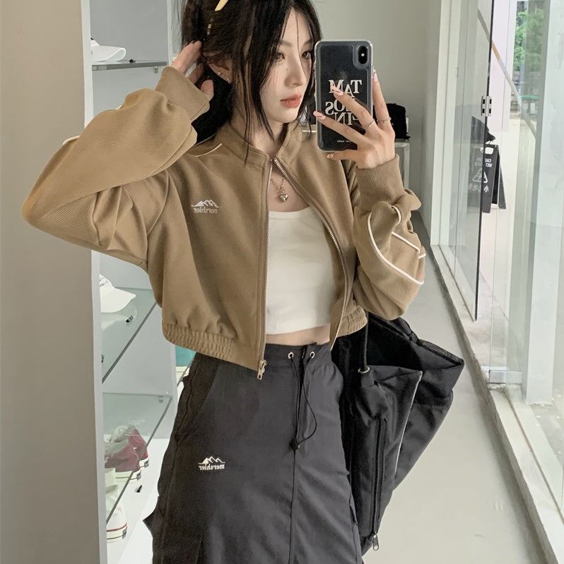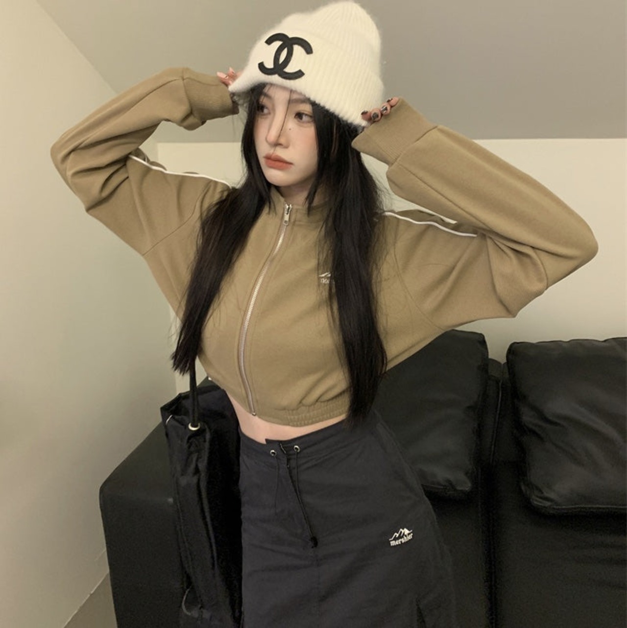 クロップド トラック ジャケット ブルゾン レディース 韓国 ファッション 秋 ショート丈 ジャージジャケット