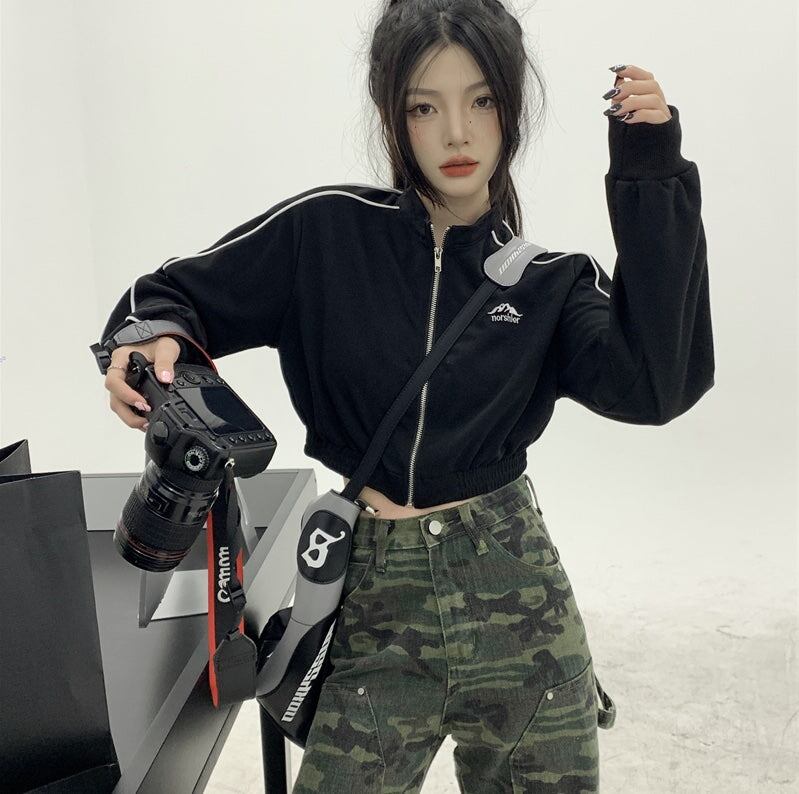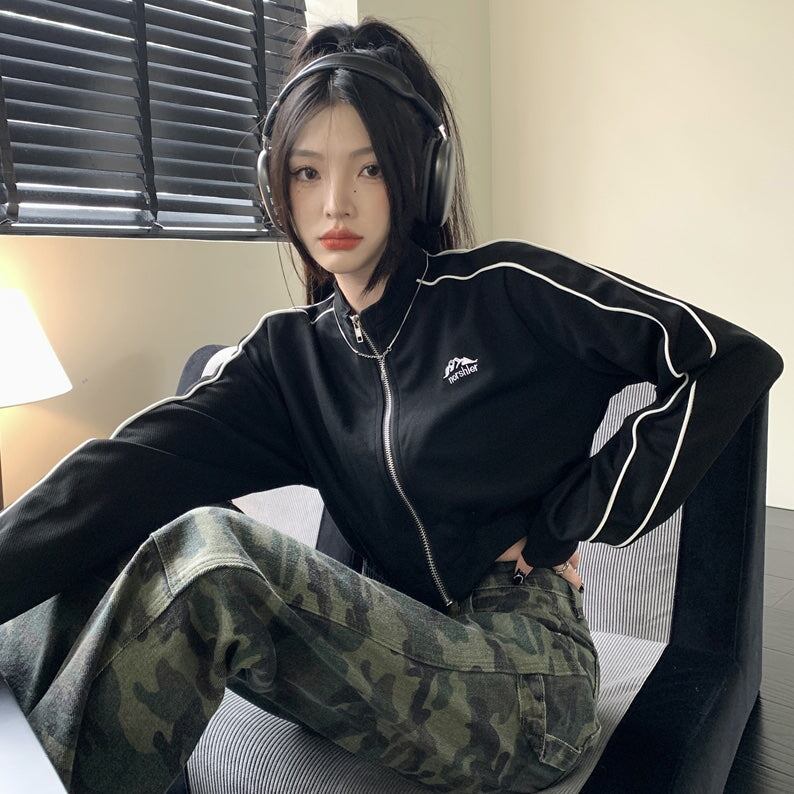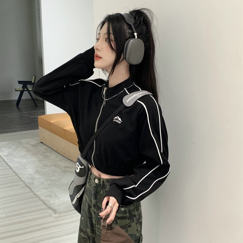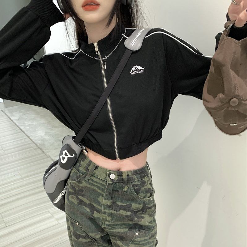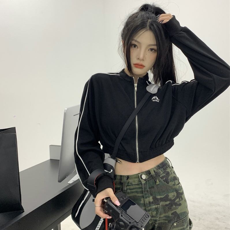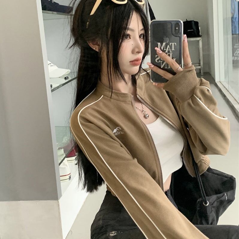 クロップド トラック ジャケット ブルゾン レディース 韓国 ファッション 秋 ショート丈 ジャージジャケット
