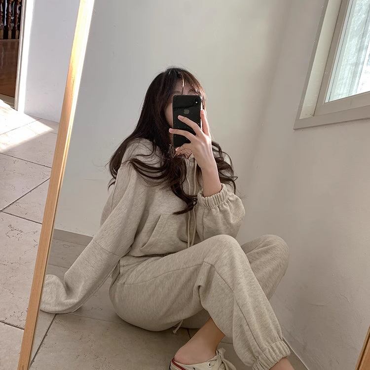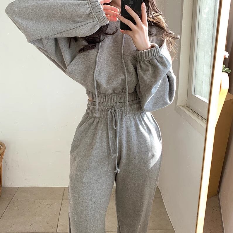 スウェット セットアップ レディース 韓国 ファッション クロップドトップス スウェットパンツ グレースウェット プルオーバー 伸縮ゴムウエスト