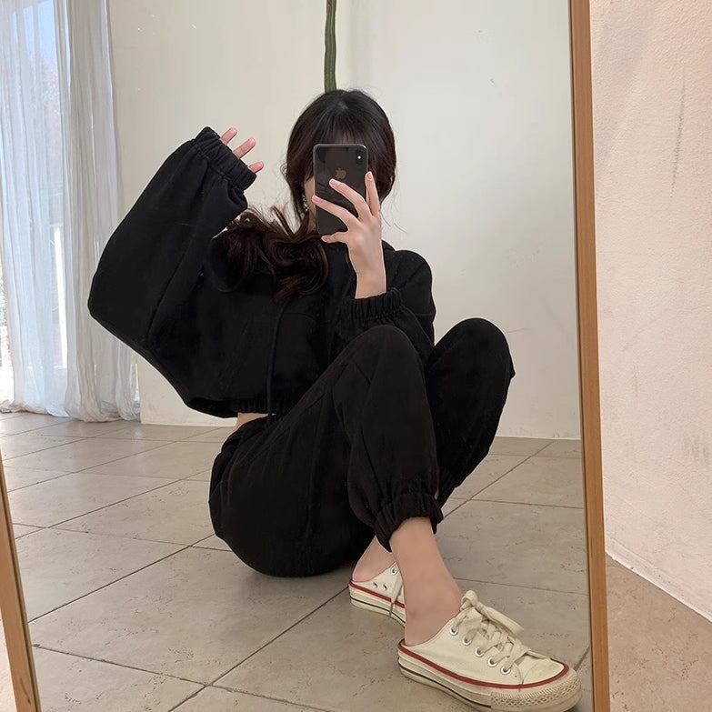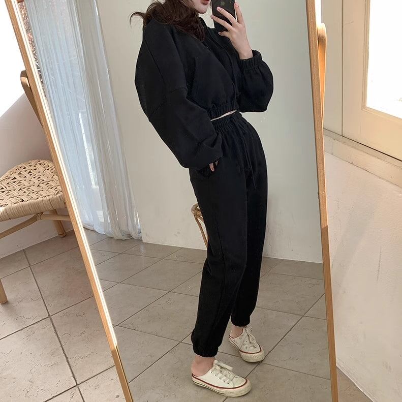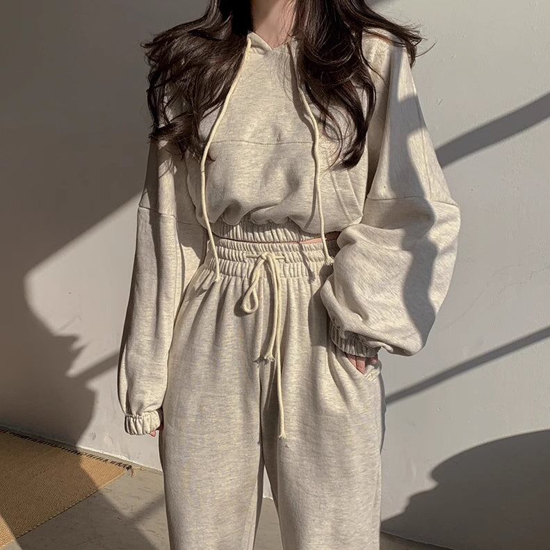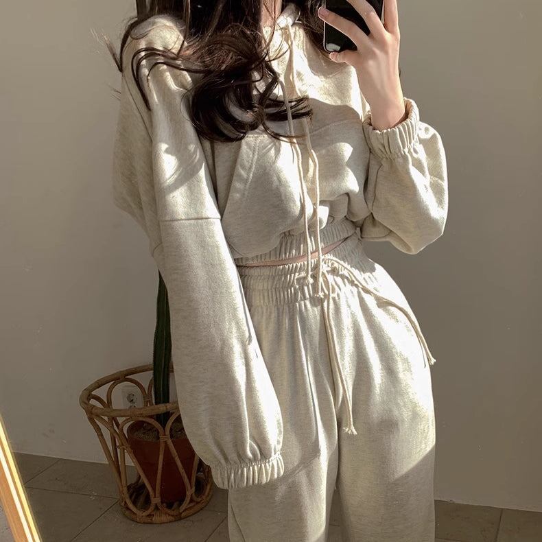 クロップド パーカー セットアップ レディース 韓国 ファッション ショート丈 トップス スウェットパンツ 上下セット