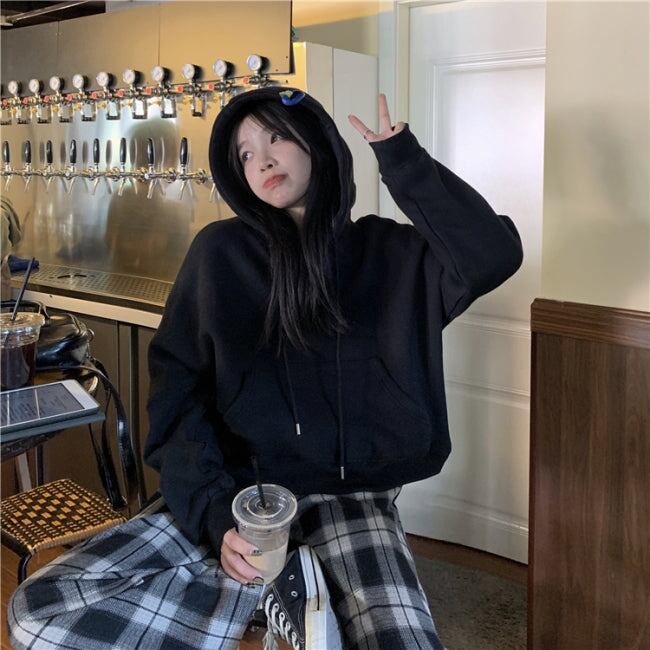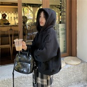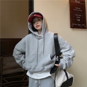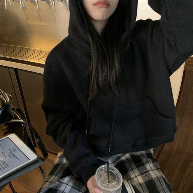 パーカー スウェット レディース 韓国 ファッション プルオーバー オーバーサイズ 春トップス ポケット ショート丈 おしゃれ
