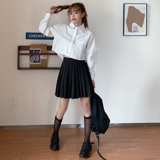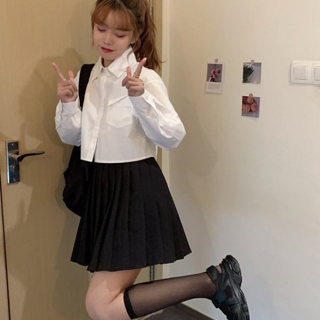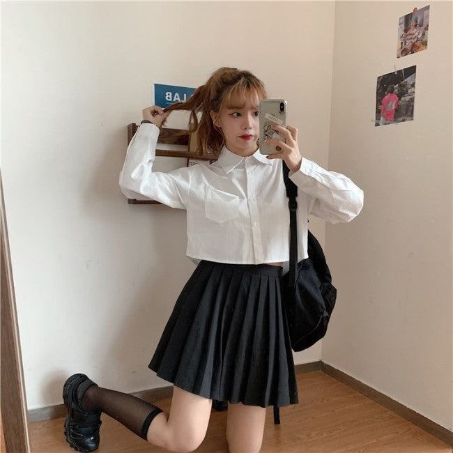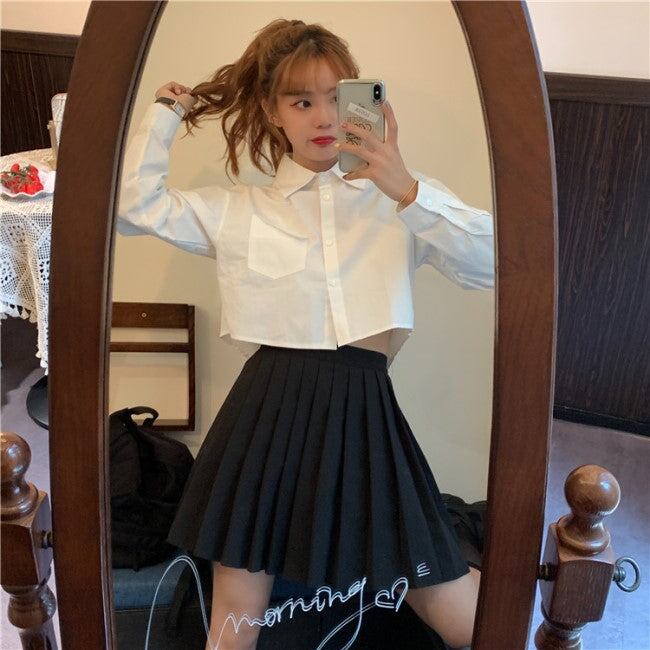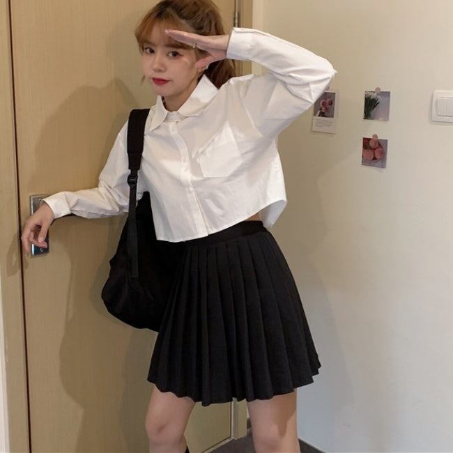 クロップドシャツ 白 ブラウス レディース 韓国 ファッション クロップトップ トップス 春コーデ 長袖シャツ シンプル