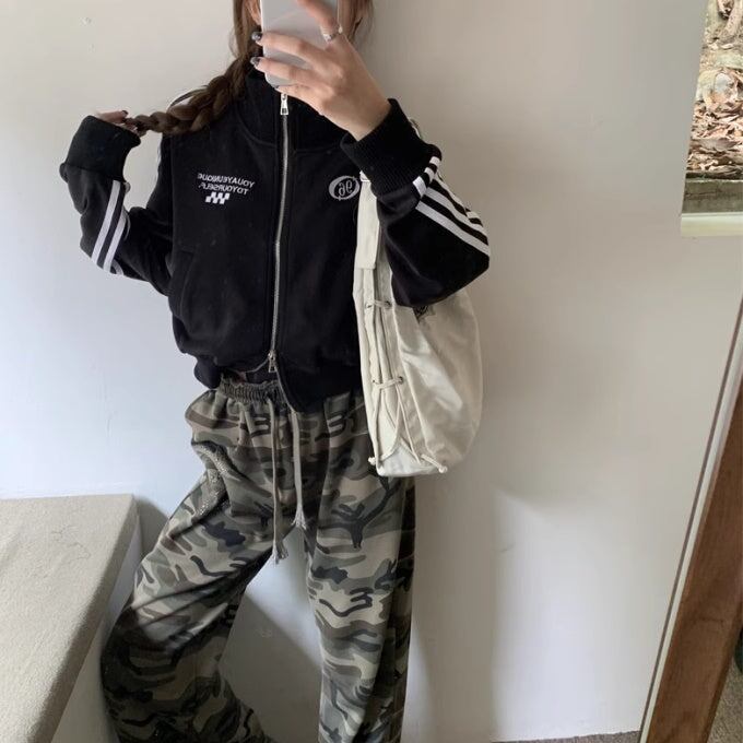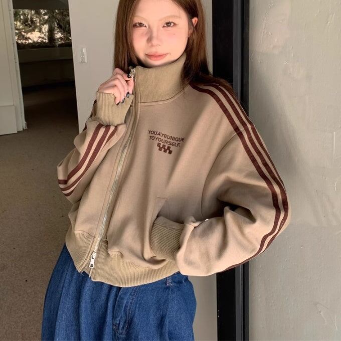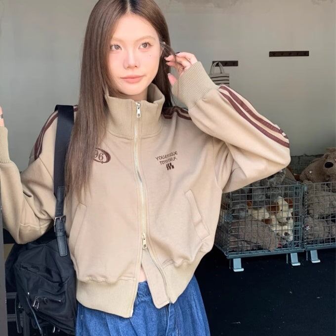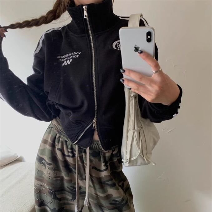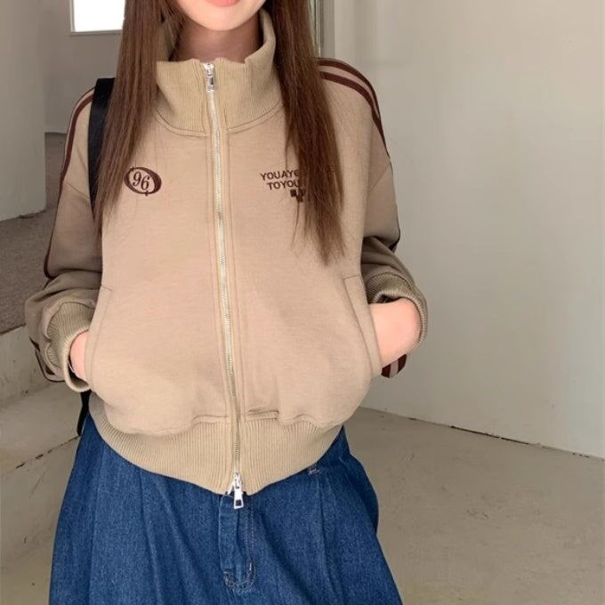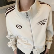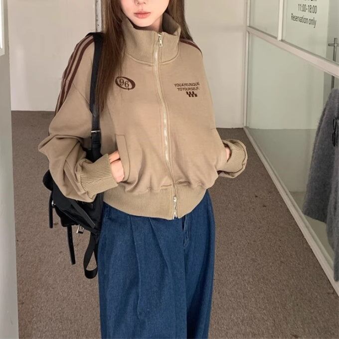 クロップ丈 スウェット トラックジャケット レディース 韓国 ファッション ショート丈 オーバーサイズ スポーツジャケット