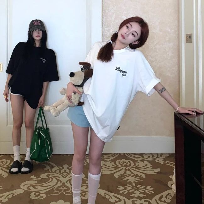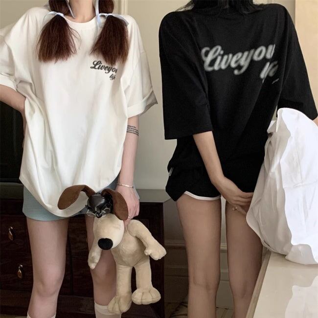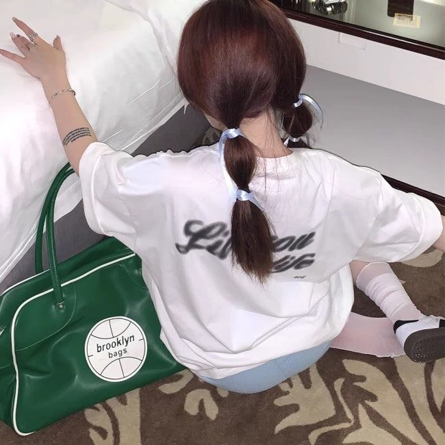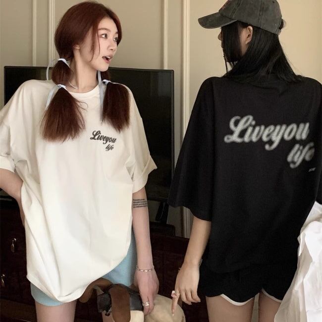 グラフィック Tシャツ レディース 韓国 ストリート バックロゴ ビッグシルエット T 夏トップス