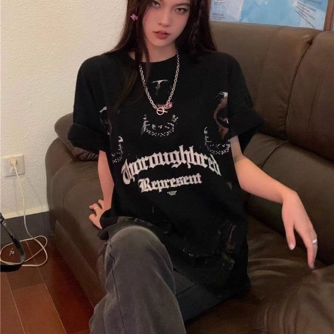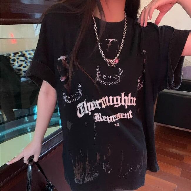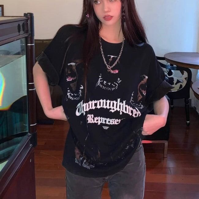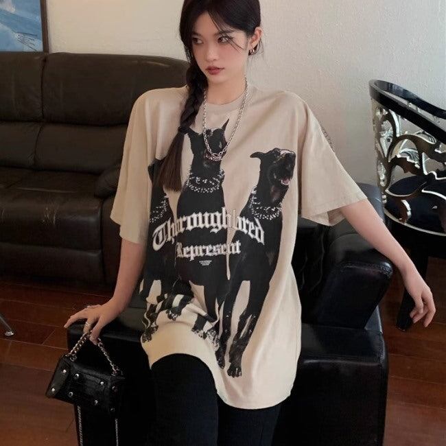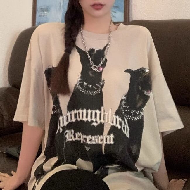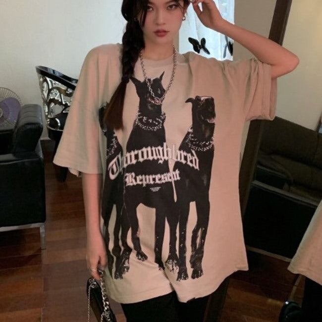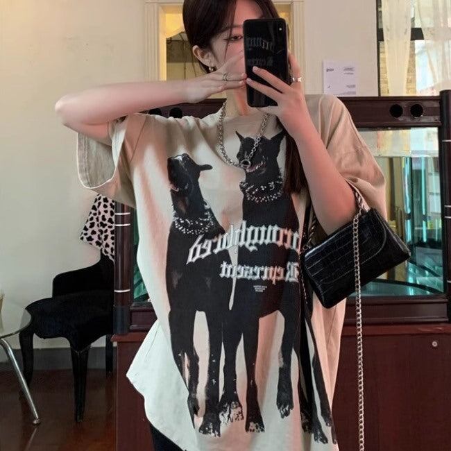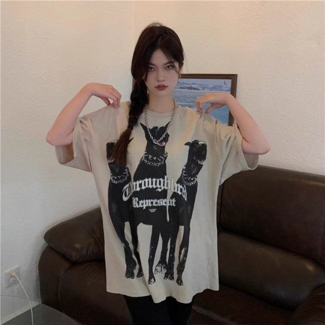 Tシャツ ドッグ レディース 韓国 ファッション アニマル tシャツ わんこ ワイルド スパイク パンク 夏 オーバーサイズ ビッグシルエット Tシャツ