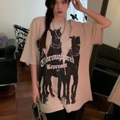 グラフィック Tシャツ レディース 韓国 ファッション アニマル プリント tシャツ ワイルド オーバーサイズ ビッグT