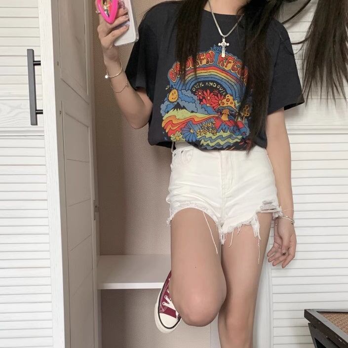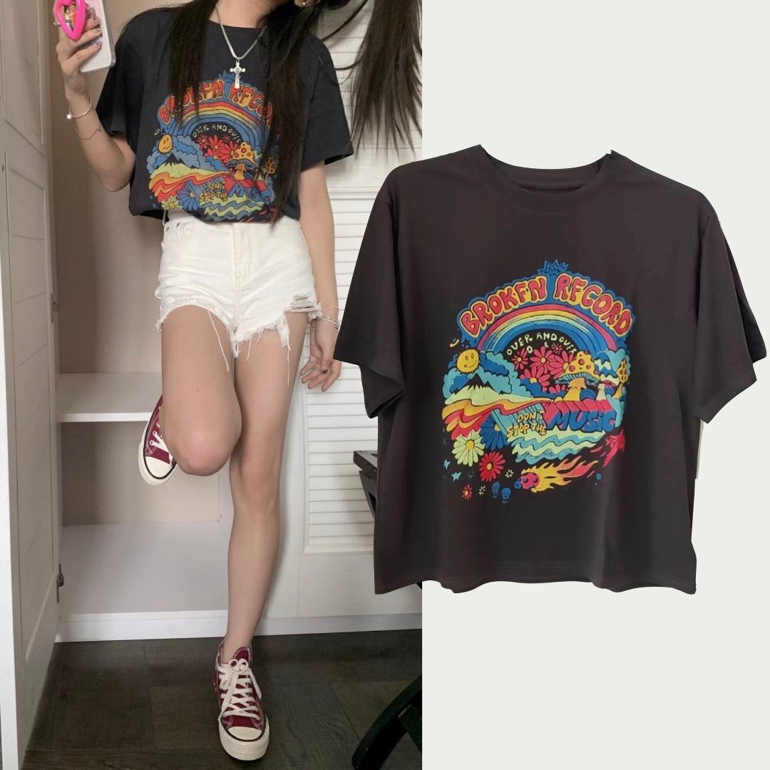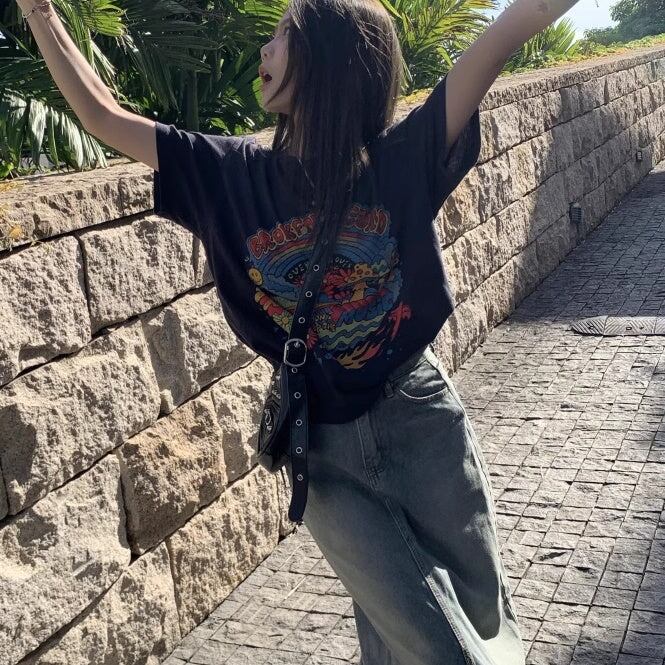 グラフィック Tシャツ レディース 韓国 ファッション オーバーサイズ アメリカン プリント
