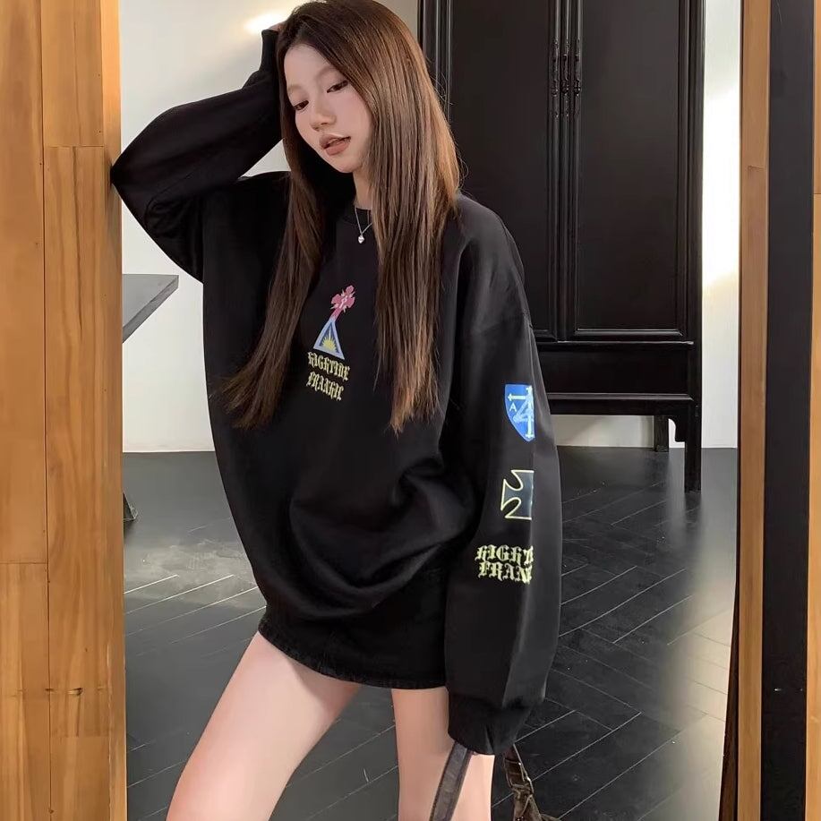 グラフィック スウェット トレーナー レディース 韓国 ファッション フロント バック サイド ロゴ グラフィック プリント スウェット シャツ