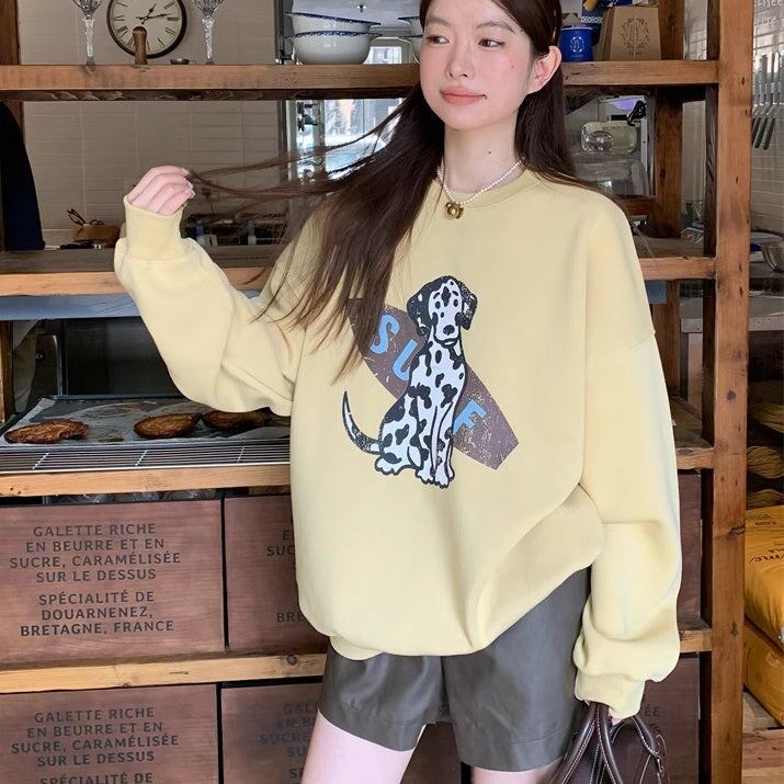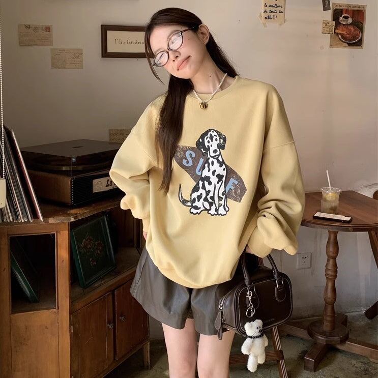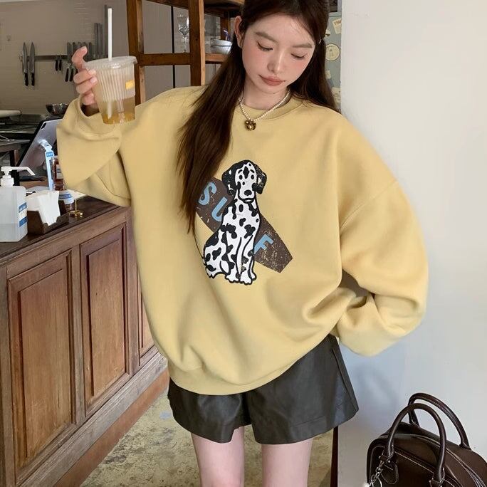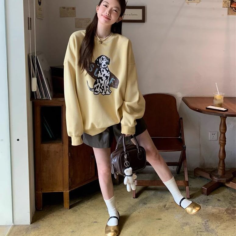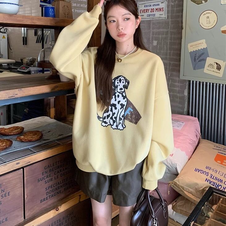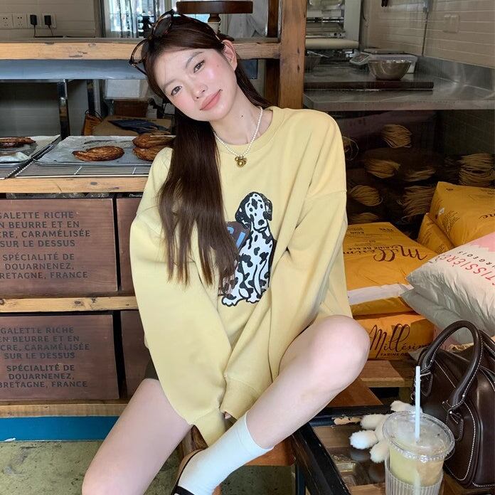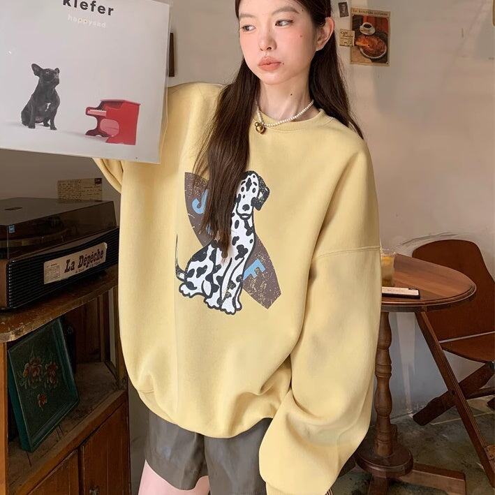 グラフィック トレーナー レディース 韓国 スウェット トップス ダルメシアン プリント スウェットシャツ