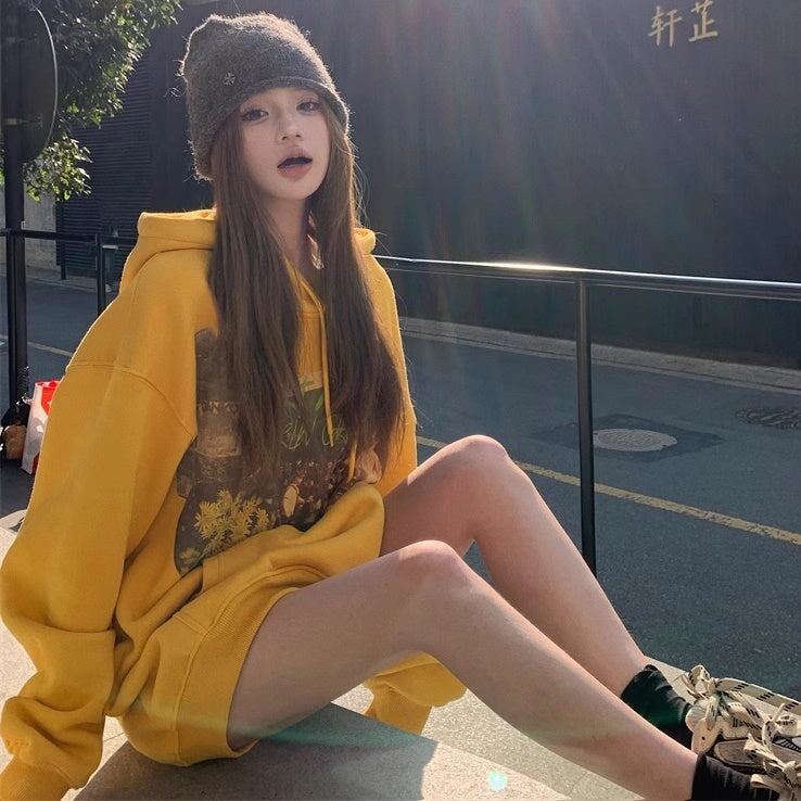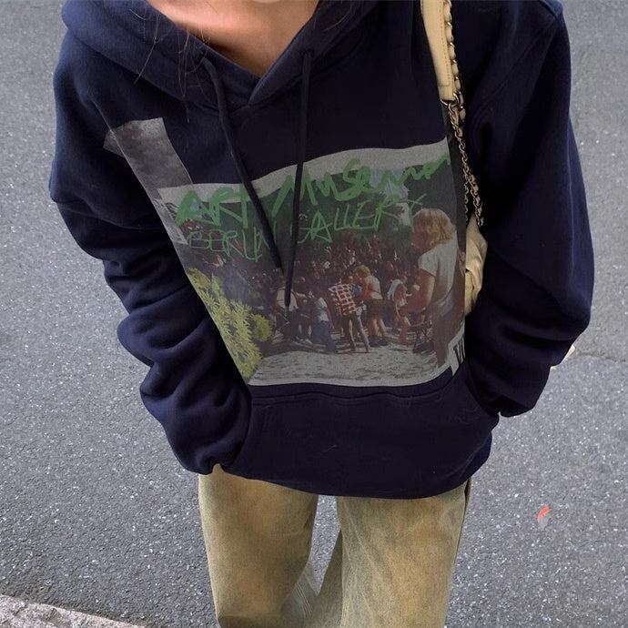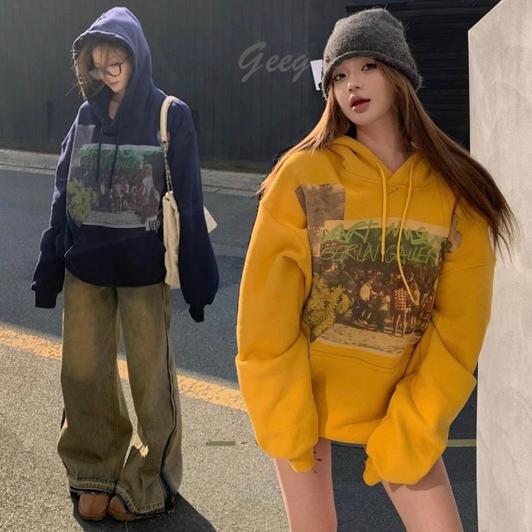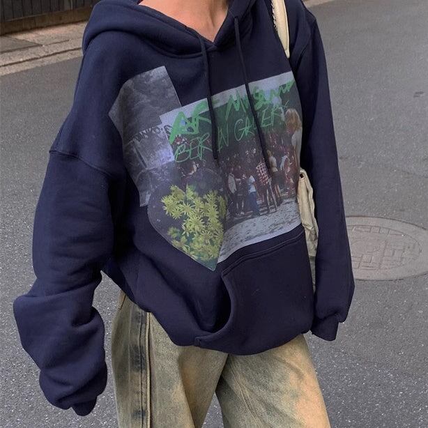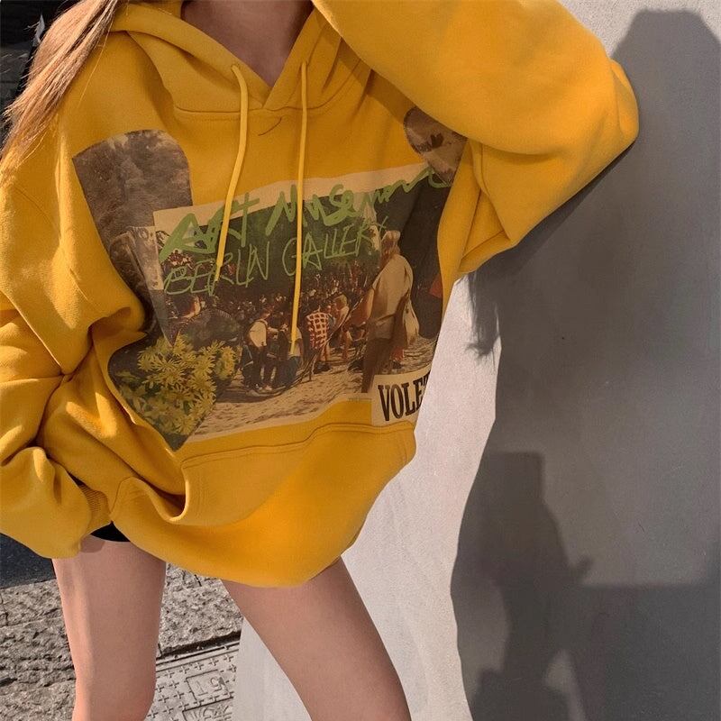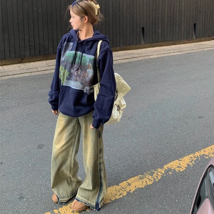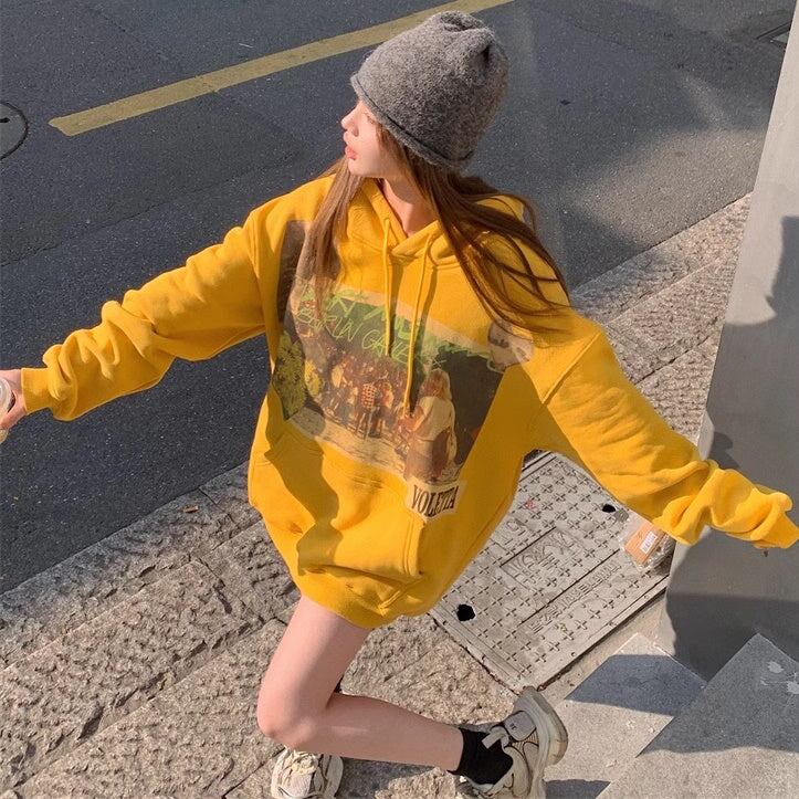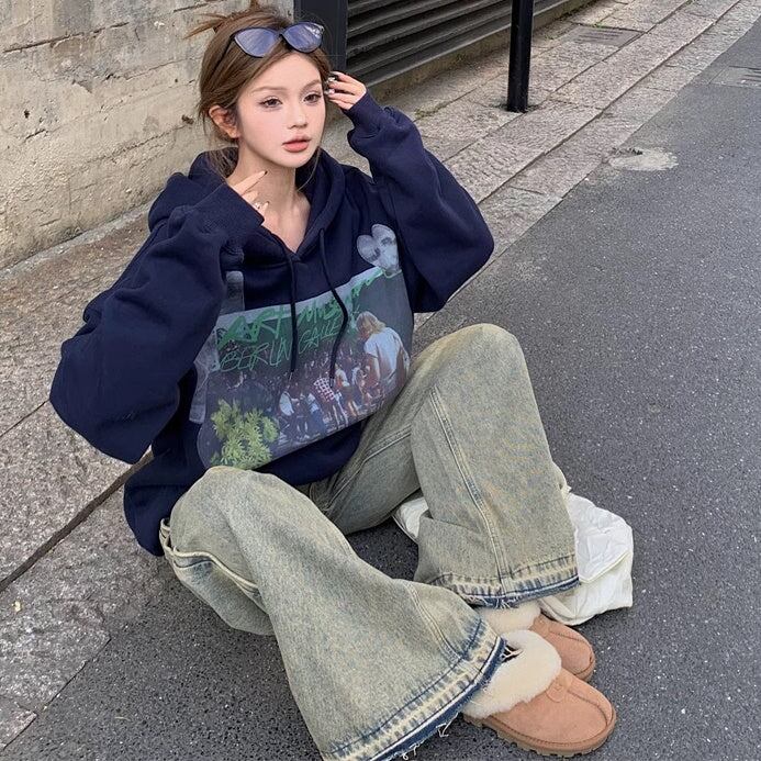 スウェットパーカー プルオーバ— レディース 韓国 ファッション グラフィック プリント フードスウェット 秋冬 厚手 裏起毛