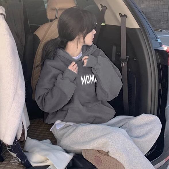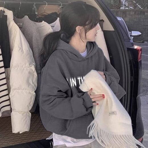 パーカー プルオーバ— レディース 韓国 ファッション 裏起毛 冬パーカー スウェット ワイドシルエット ドロップショルダー グレーパーカー フーディ