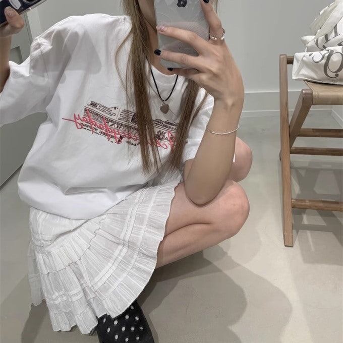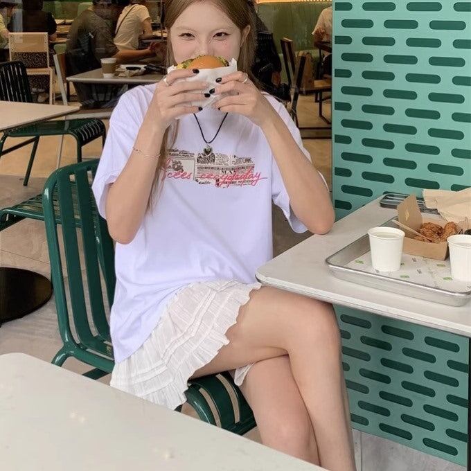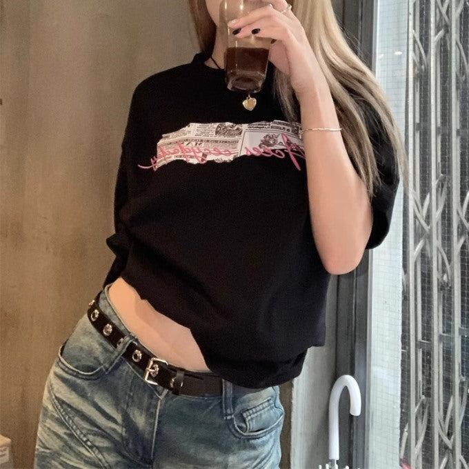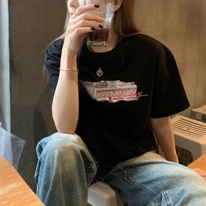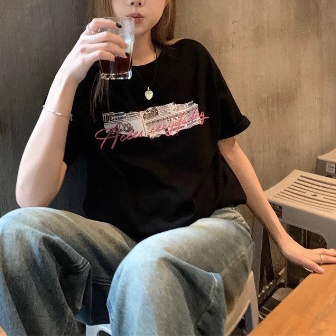 グラフィック Tシャツ レディース 韓国 ファッション バック プリント 白T 黒T かわいい