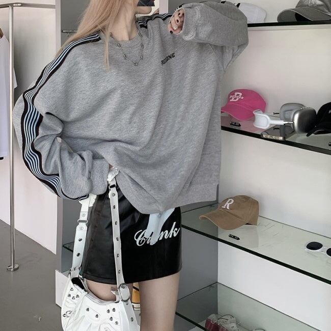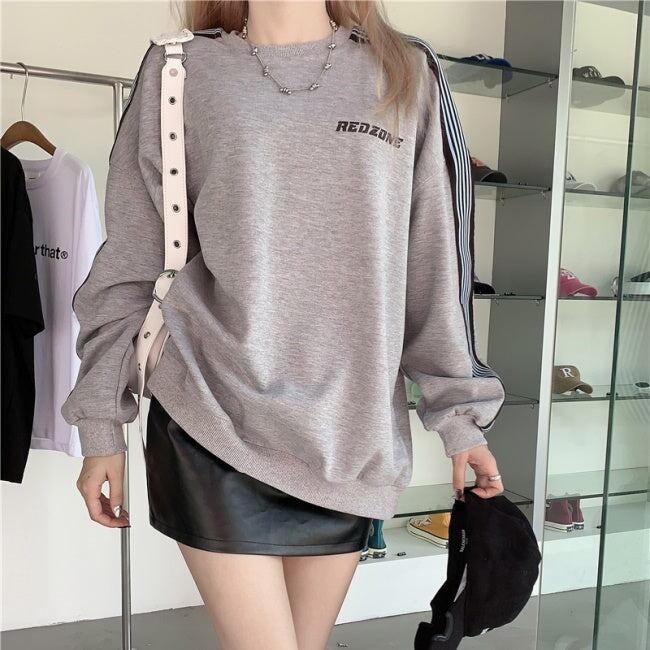 トレーナー 袖ライン レディース 韓国 ファッション ロゴ スウェット 長袖 グレースウェット オーバーサイズ スポーツ カジュアル