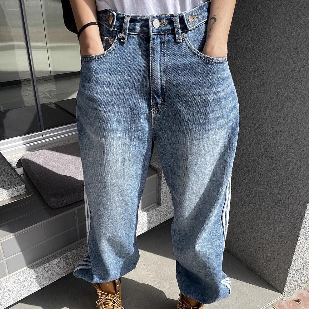 デニムパンツ サイドライン レディース 韓国 ファッション 裾ゴム ジョガーパンツ かわいい カジュアル ストリート
