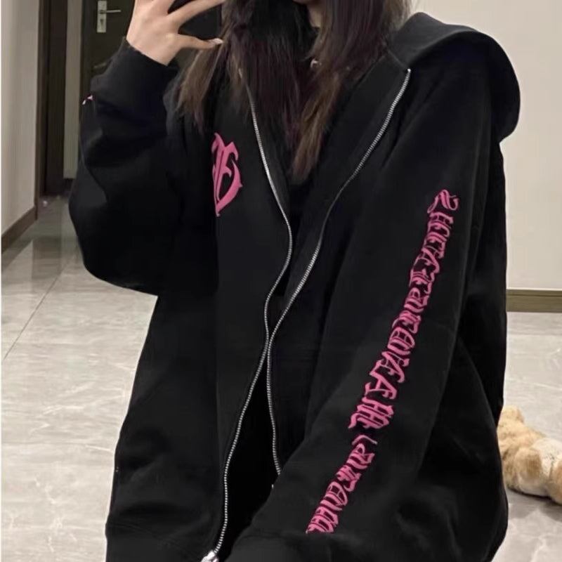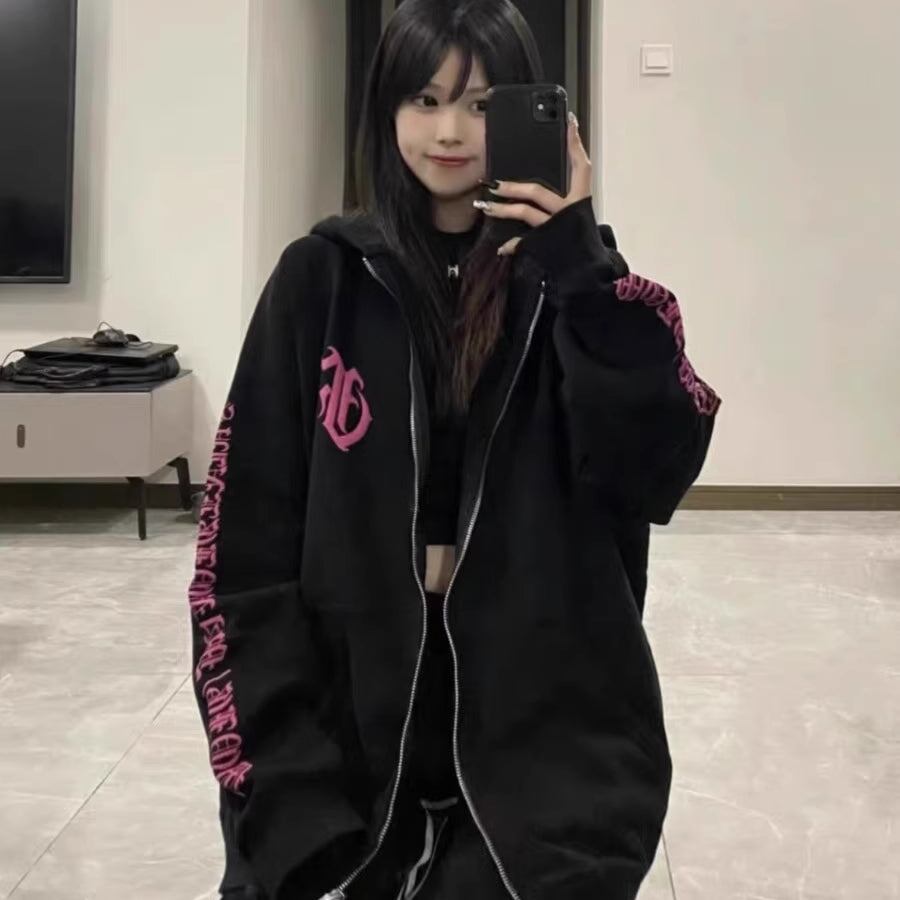 サイドロゴ パーカー レディース 韓国 ファッション オーバーサイズ ジップアップ スウェット フーディー