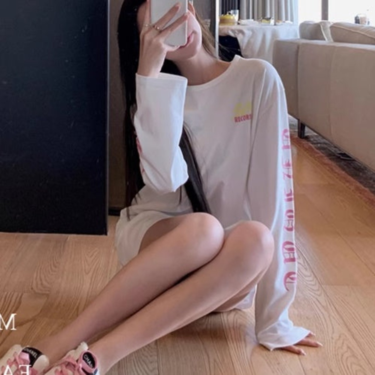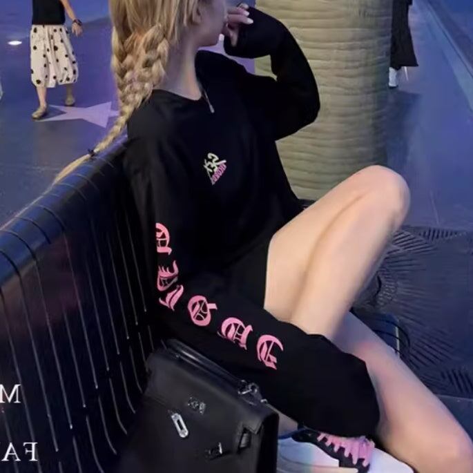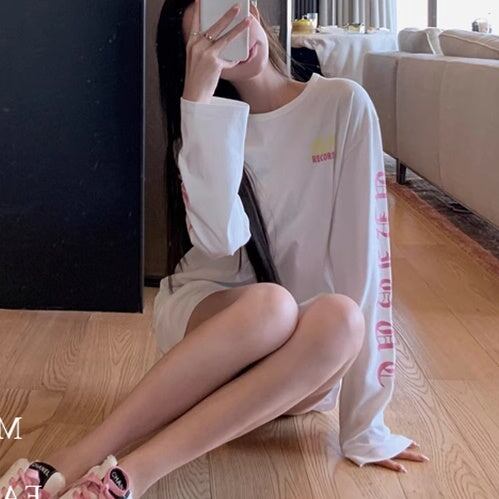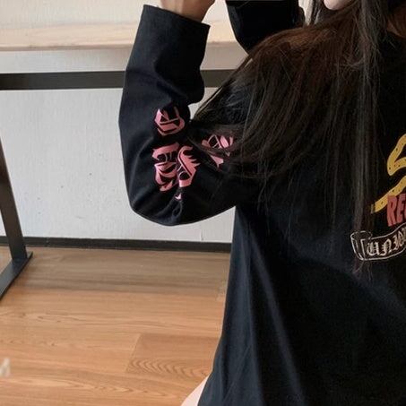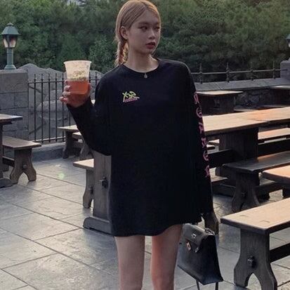 サブカル ロゴ プリント ロンT レディース 韓国 ファッション ストリート 袖ロゴ バックプリント オーバーサイズ ロングTシャツ