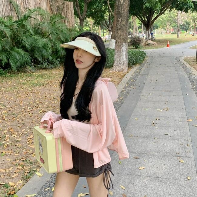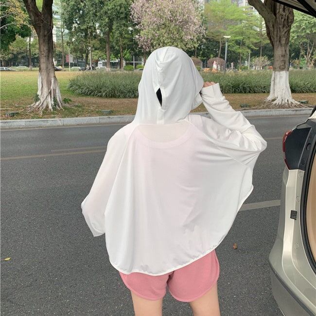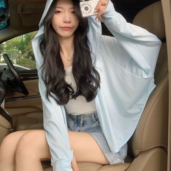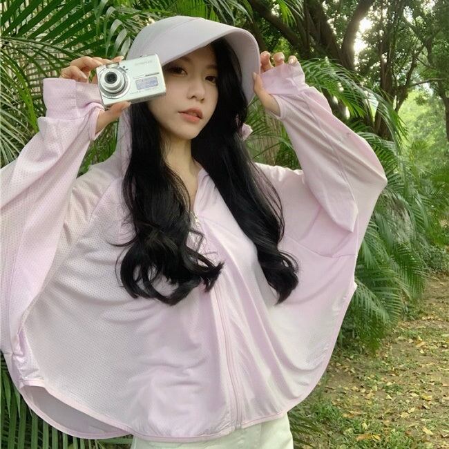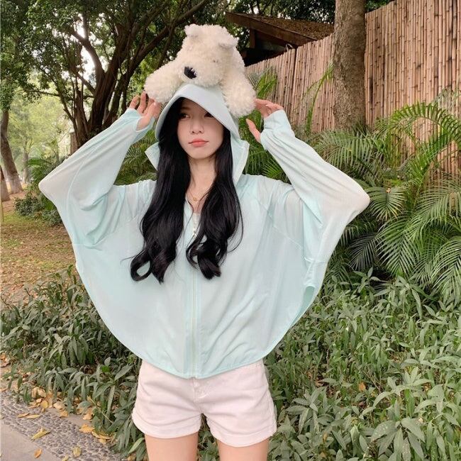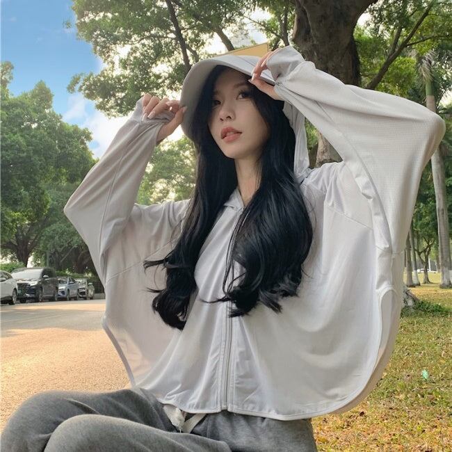 サマーパーカー レディース 韓国 速乾 日焼け止め オーバー パーカー フード つば付き ドルマンスリーブ クロップド丈