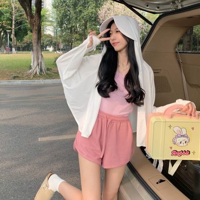 速乾 日焼け止め パーカー レディース 韓国 ファッション フード つば付き ドルマンスリーブ クロップド丈 おしゃれ 夏パーカー 薄手 カバーアップ 日焼け防止 顔 腕 ロングスリーブ