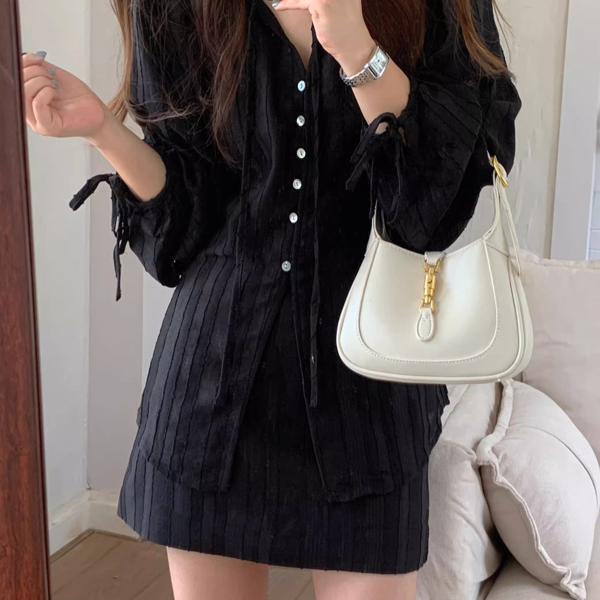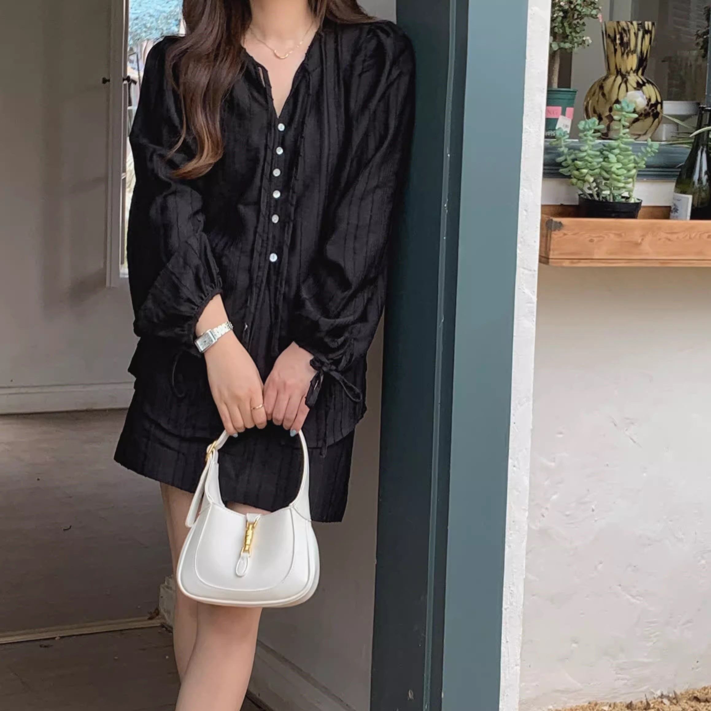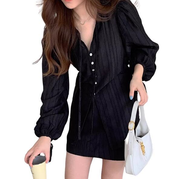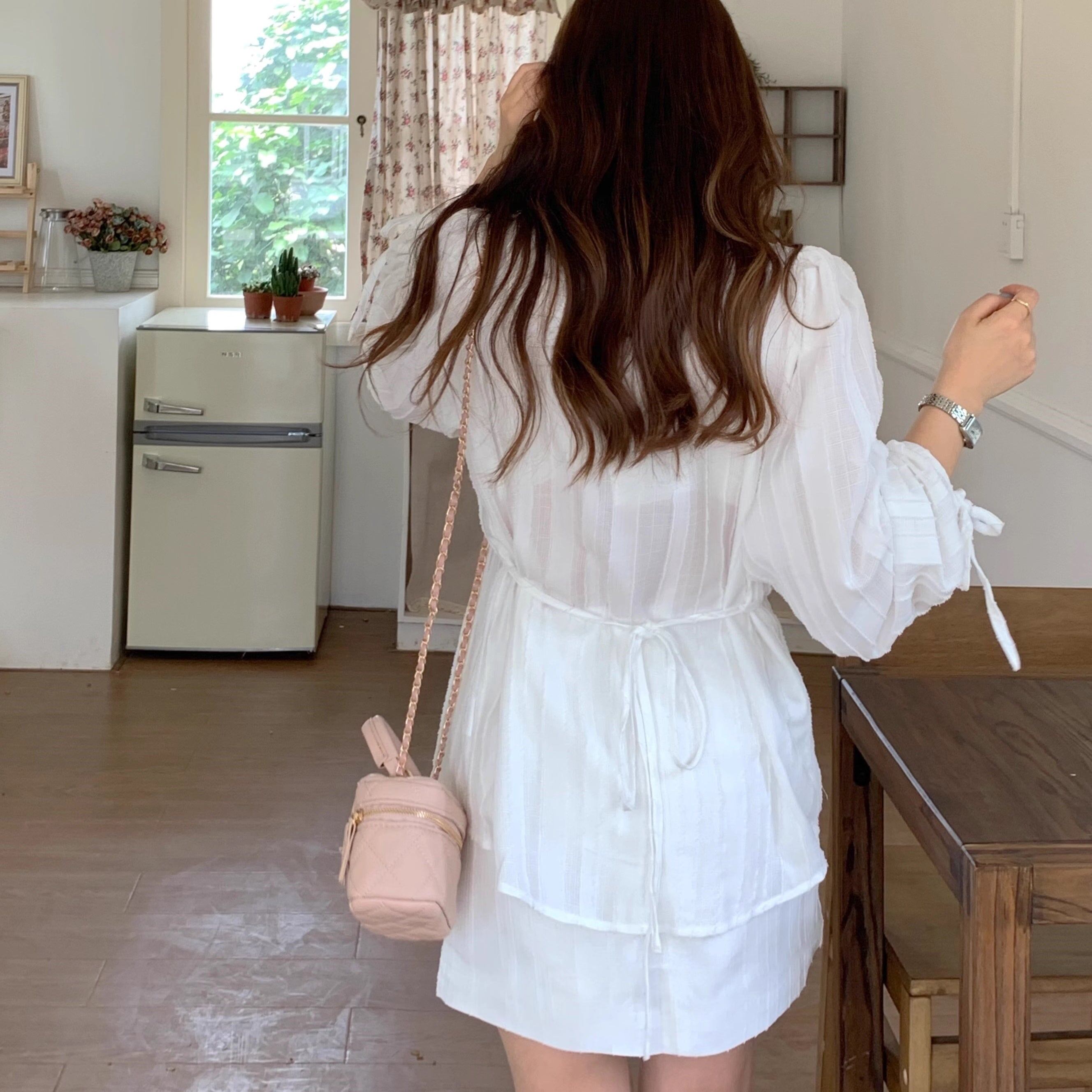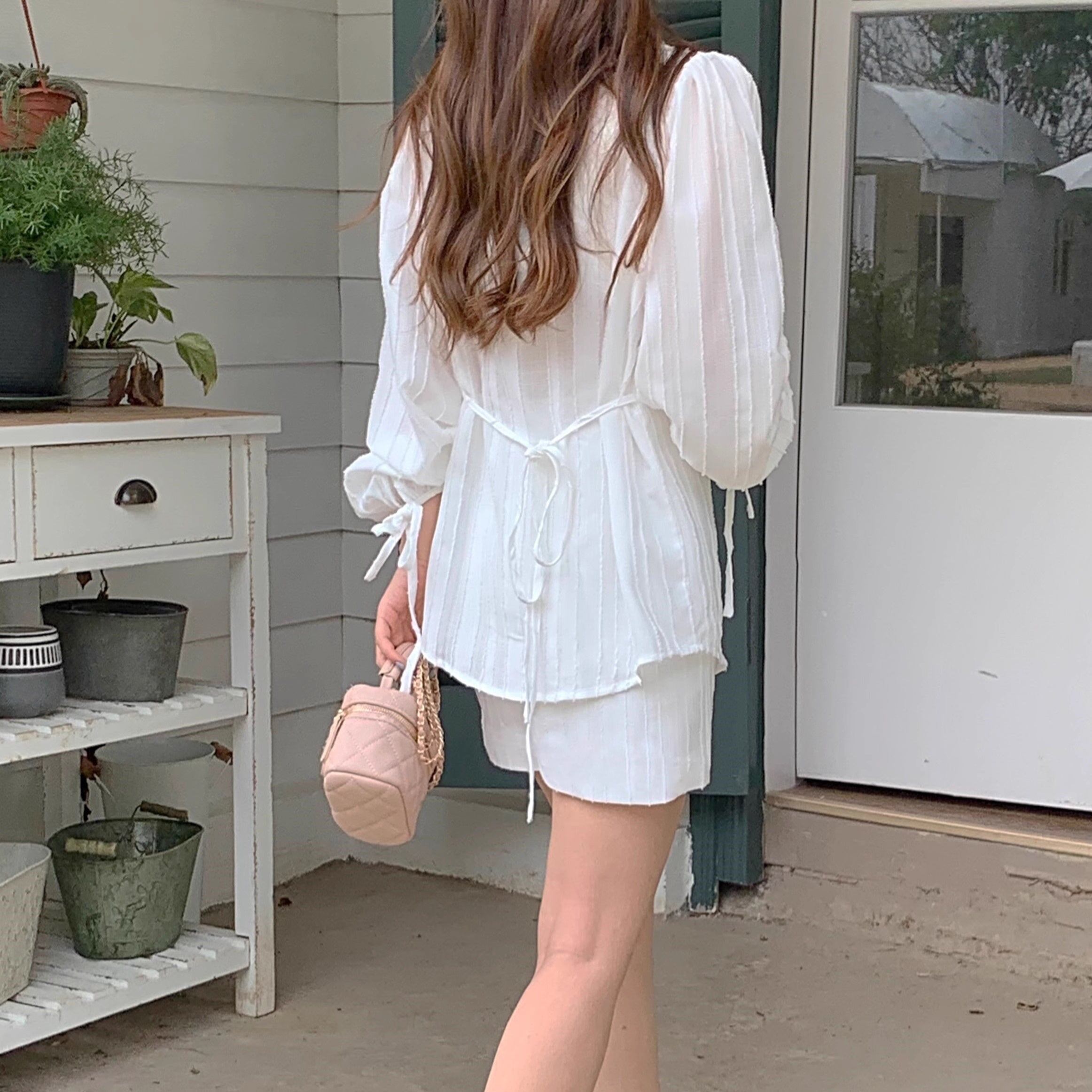 シフォン ブラウス セットアップ レディース ワンピース風 Vネック 長袖 シアー トップス ミニスカートレディース 韓国 ファッション 夏