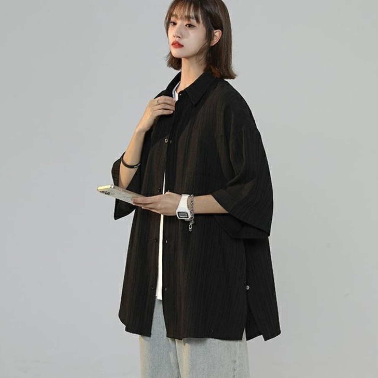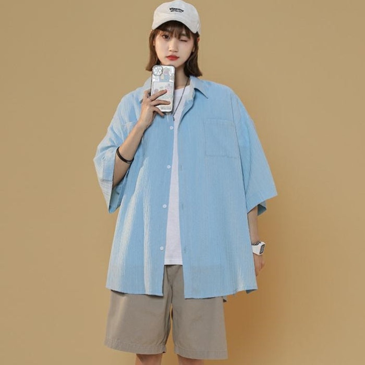 シャツ レディース 韓国 ファッション 半袖 無地 ビッグシャツ メンズライク ストリート オーバーサイズ シャツ