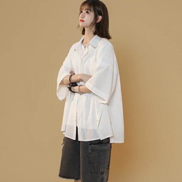 ビッグシャツ 半袖 レディース 韓国 ファッション 無地 シンプル エアリー??おしゃれ メンズライク ストリート カジュアル オーバーサイズ