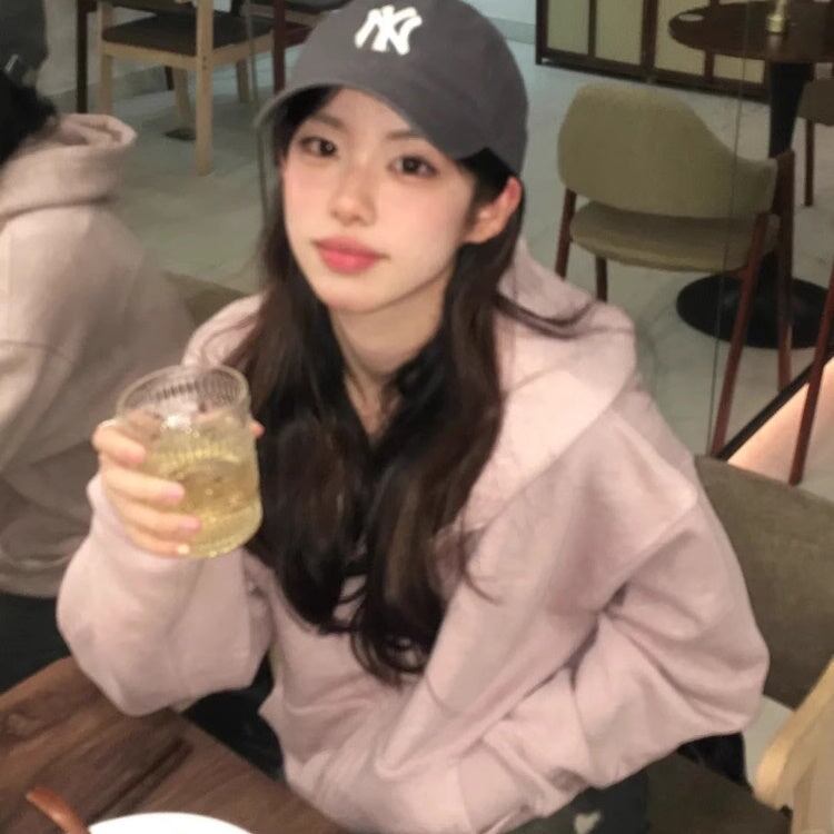 ジップパーカー レディース 韓国 ファッション くすみ ピンク オーバーサイズ ロング袖 指穴 ドロップショルダー ニュアンスカラー