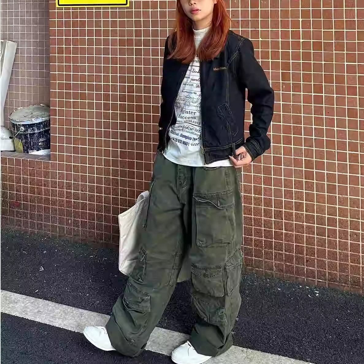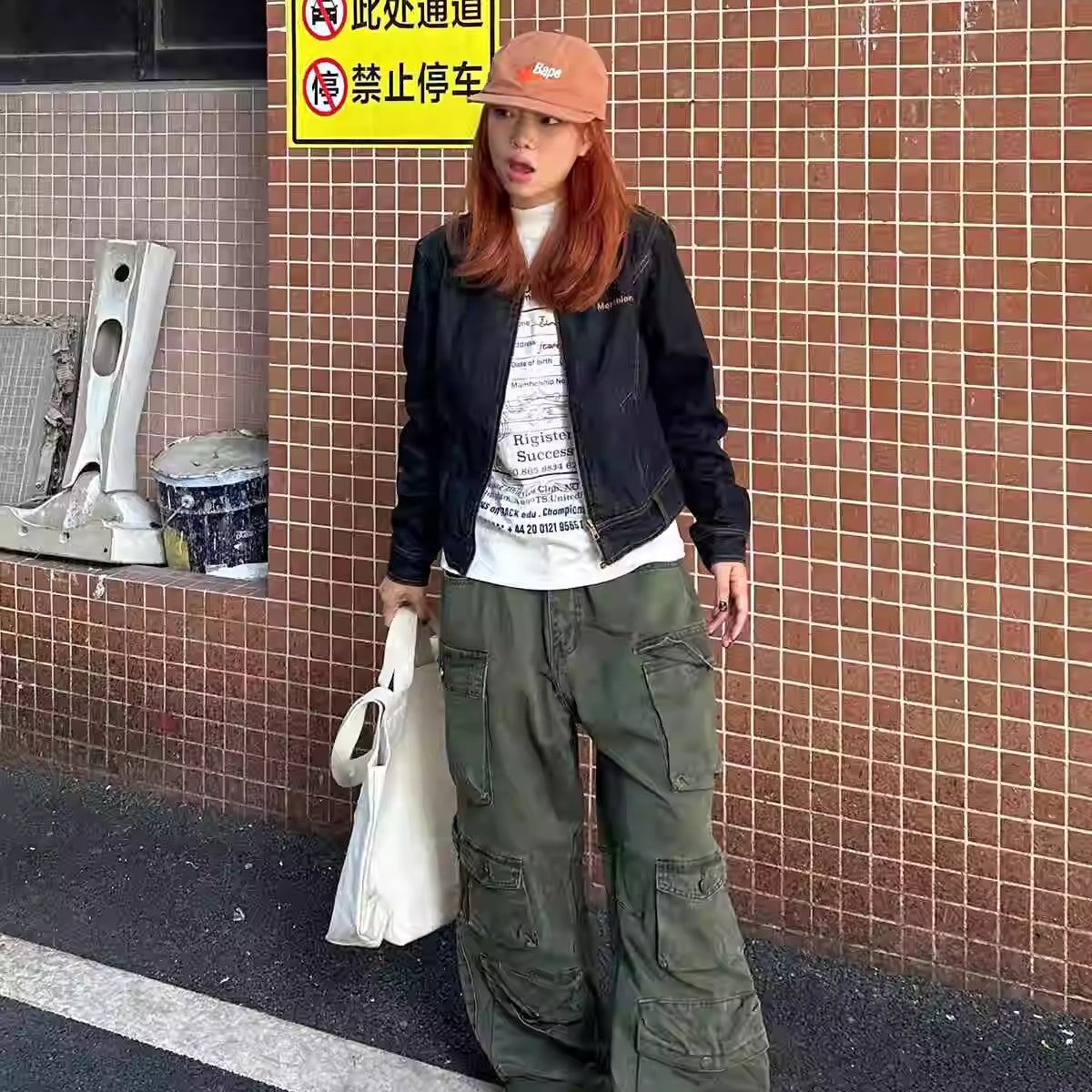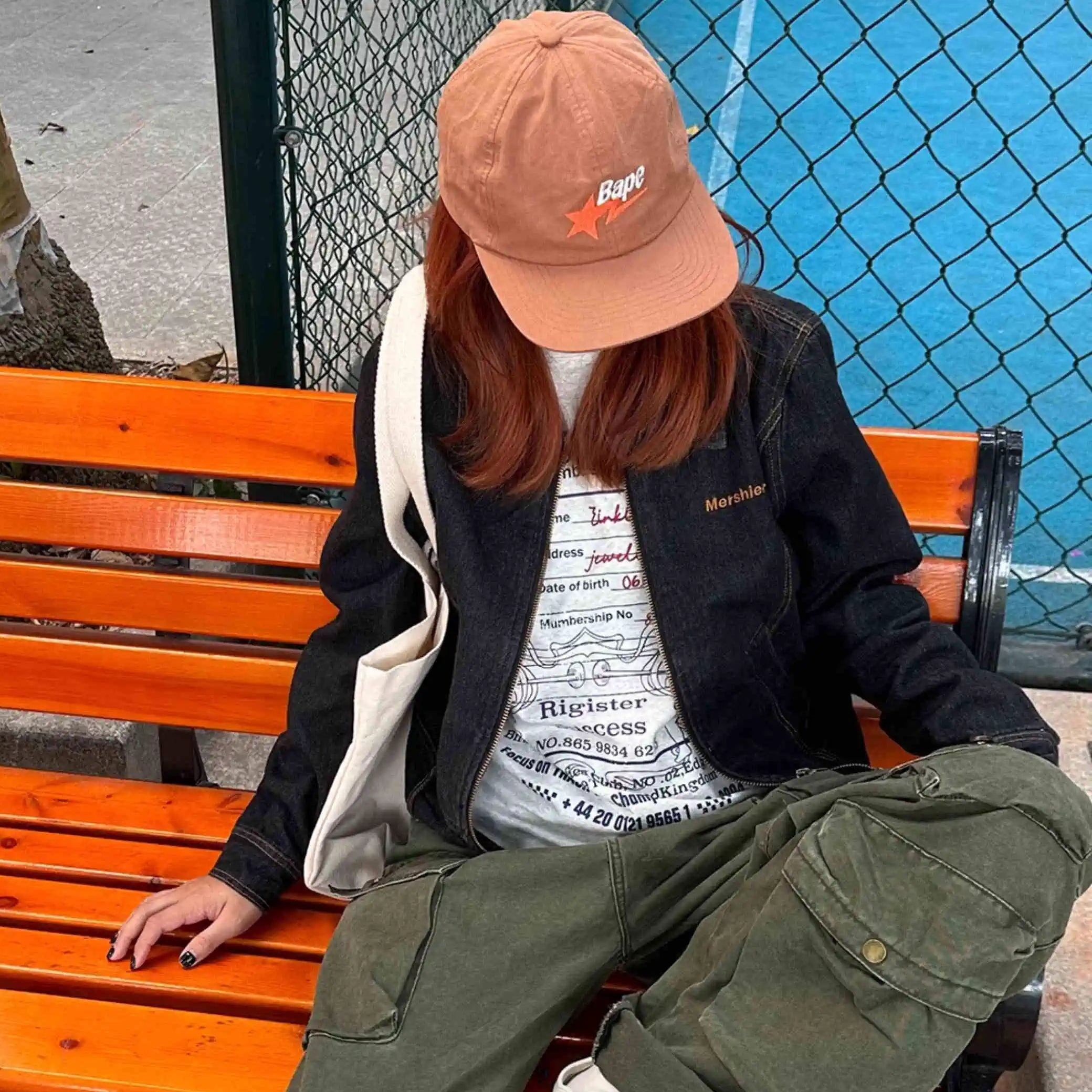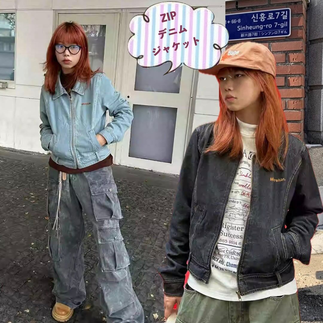 ジップアップ デニムジャケット レディース 韓国 ファッション ロゴ デニムブルゾン Gジャン