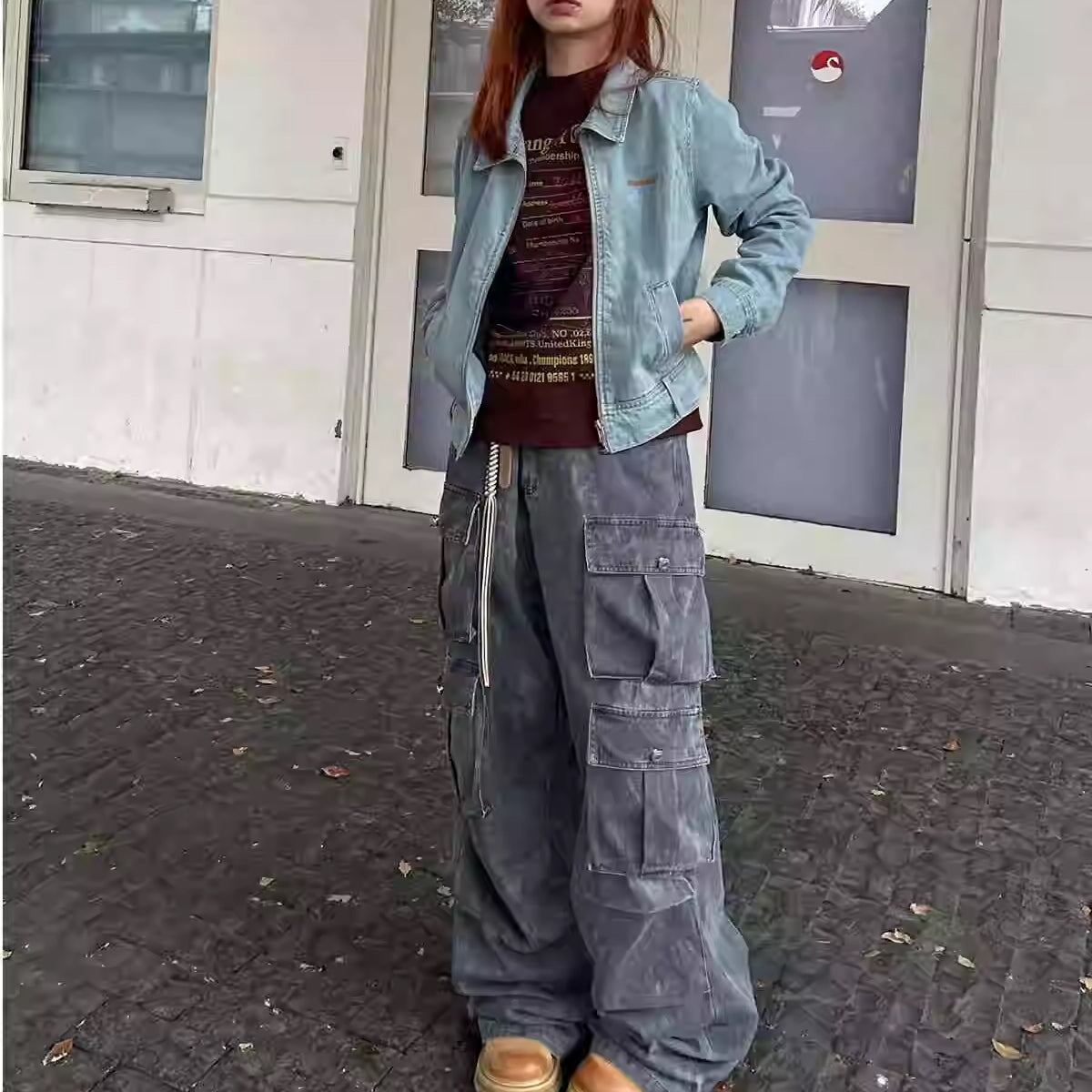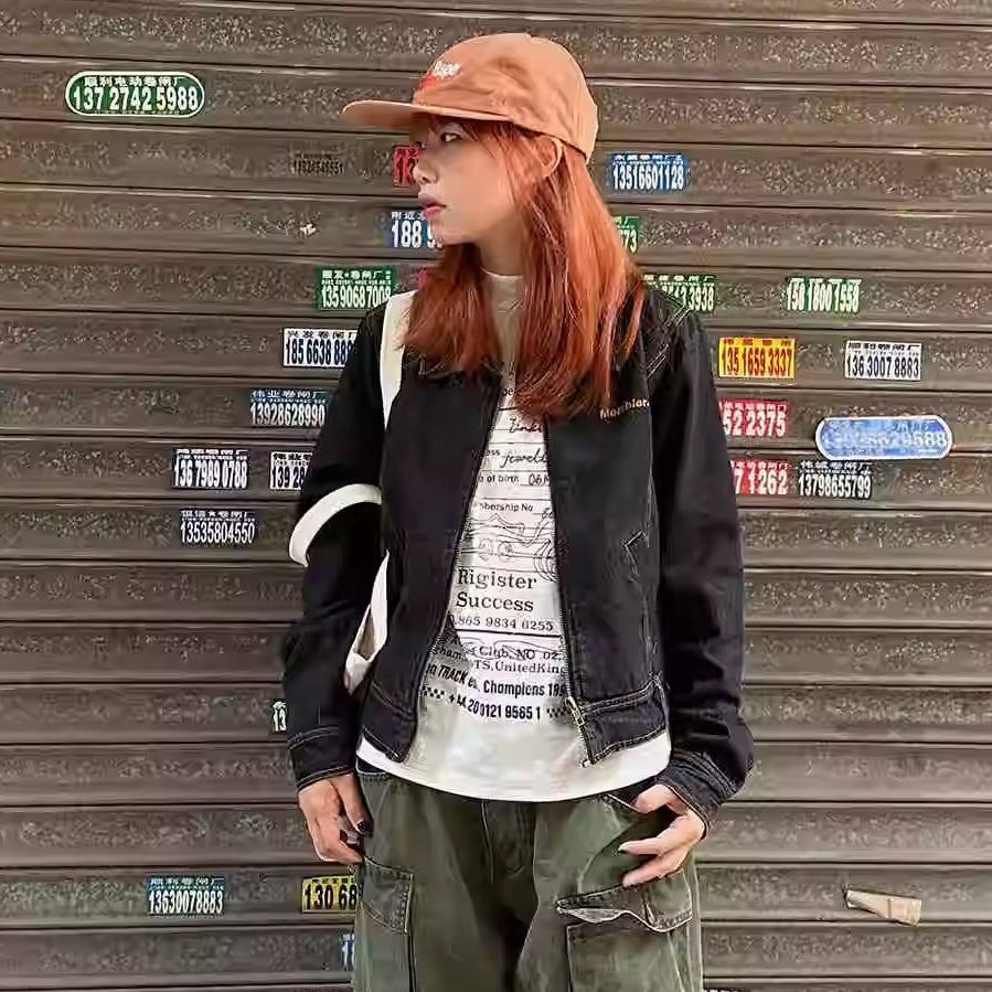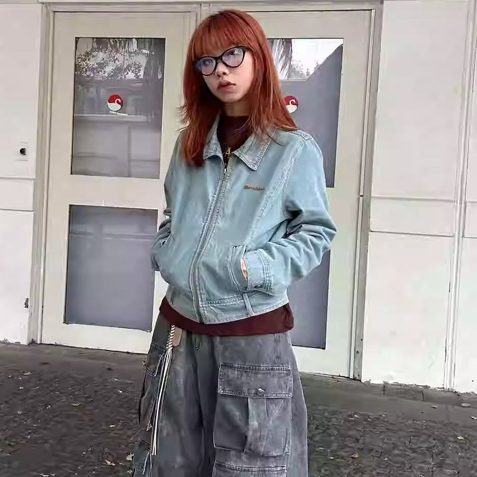 デニムジャケット ジップブルゾン レディース 韓国 ファッション シンプル デニム アウター 春シャツ ジャケット アウター ショートジャケット デニム ライトブルー ブラックデニム ワンポイントロゴ