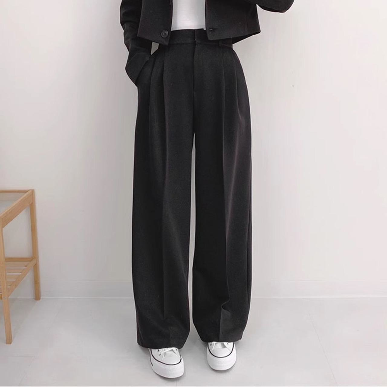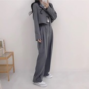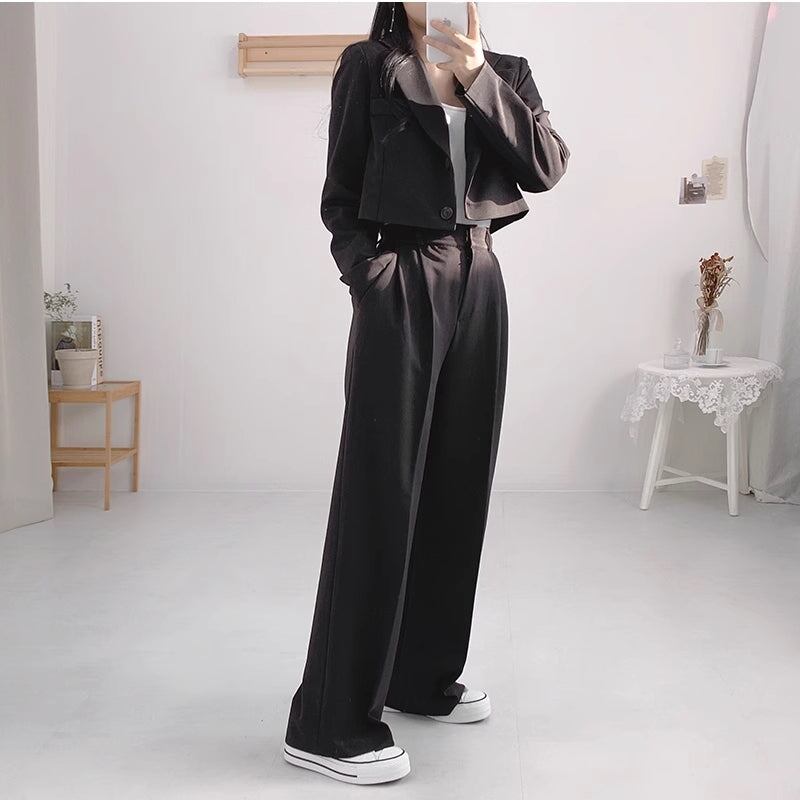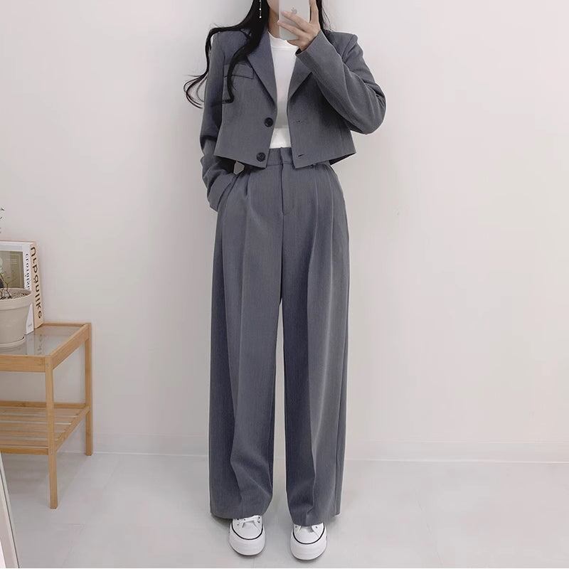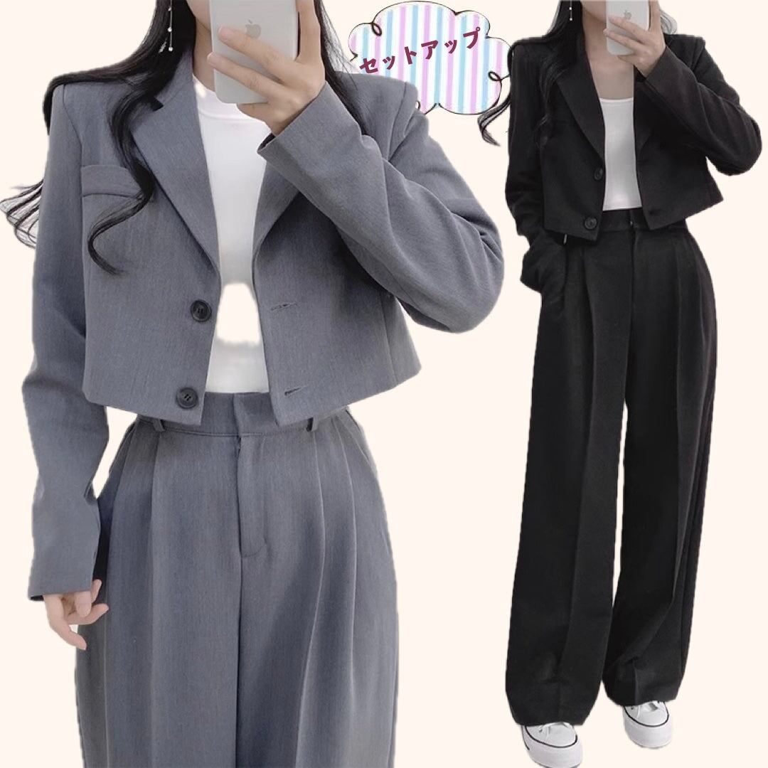 ジャケット セットアップ レディース スーツ クロップドジャケット ワイドパンツ 上下セット 韓国 ファッション タックパンツ ショートジャケット フォーマル シンプル