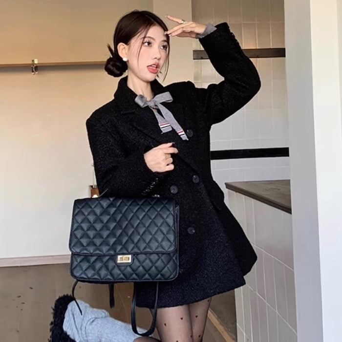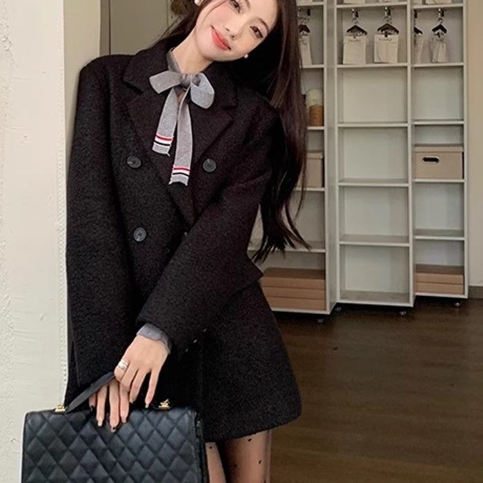 ジャケットコート ダブルボタン レディース 韓国 ファッション キルティング ミドル丈 コート