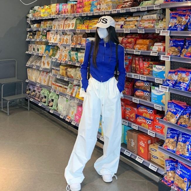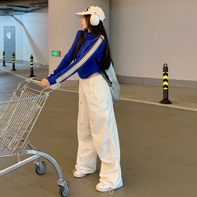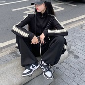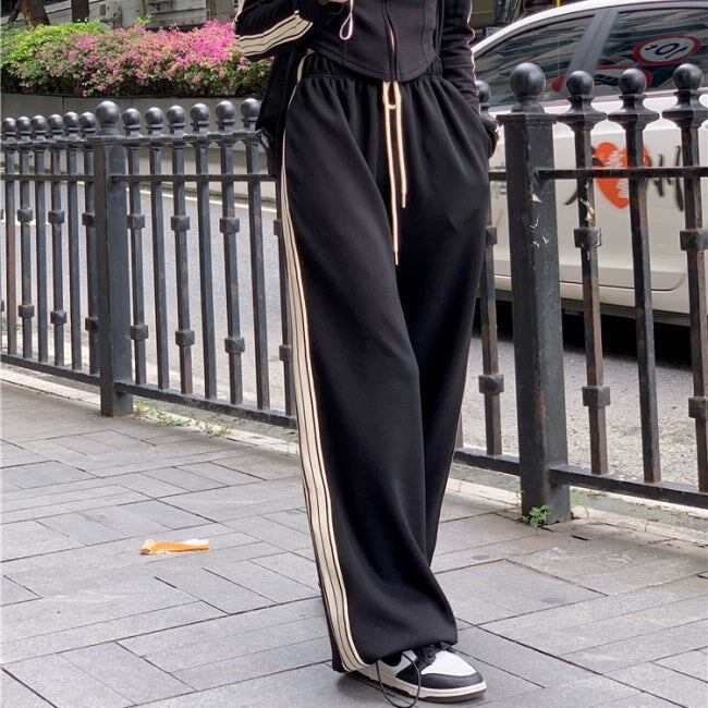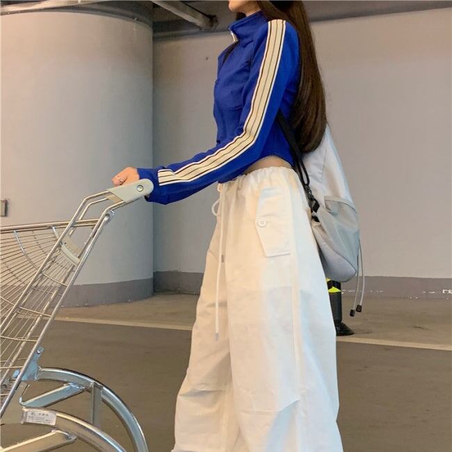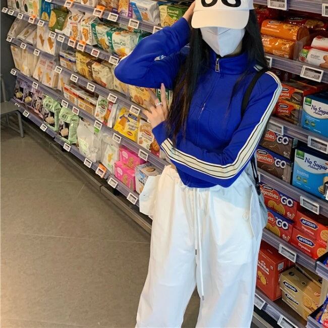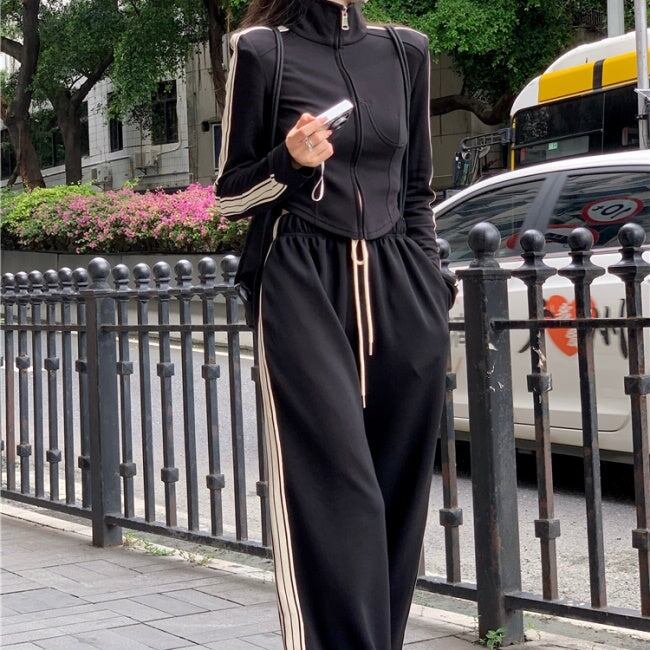 ジャージ セットアップ レディース 韓国 ファッション クロップド ジャケット ワイドパンツ 上下セット サイドライン スポーツカジュアル ウェア